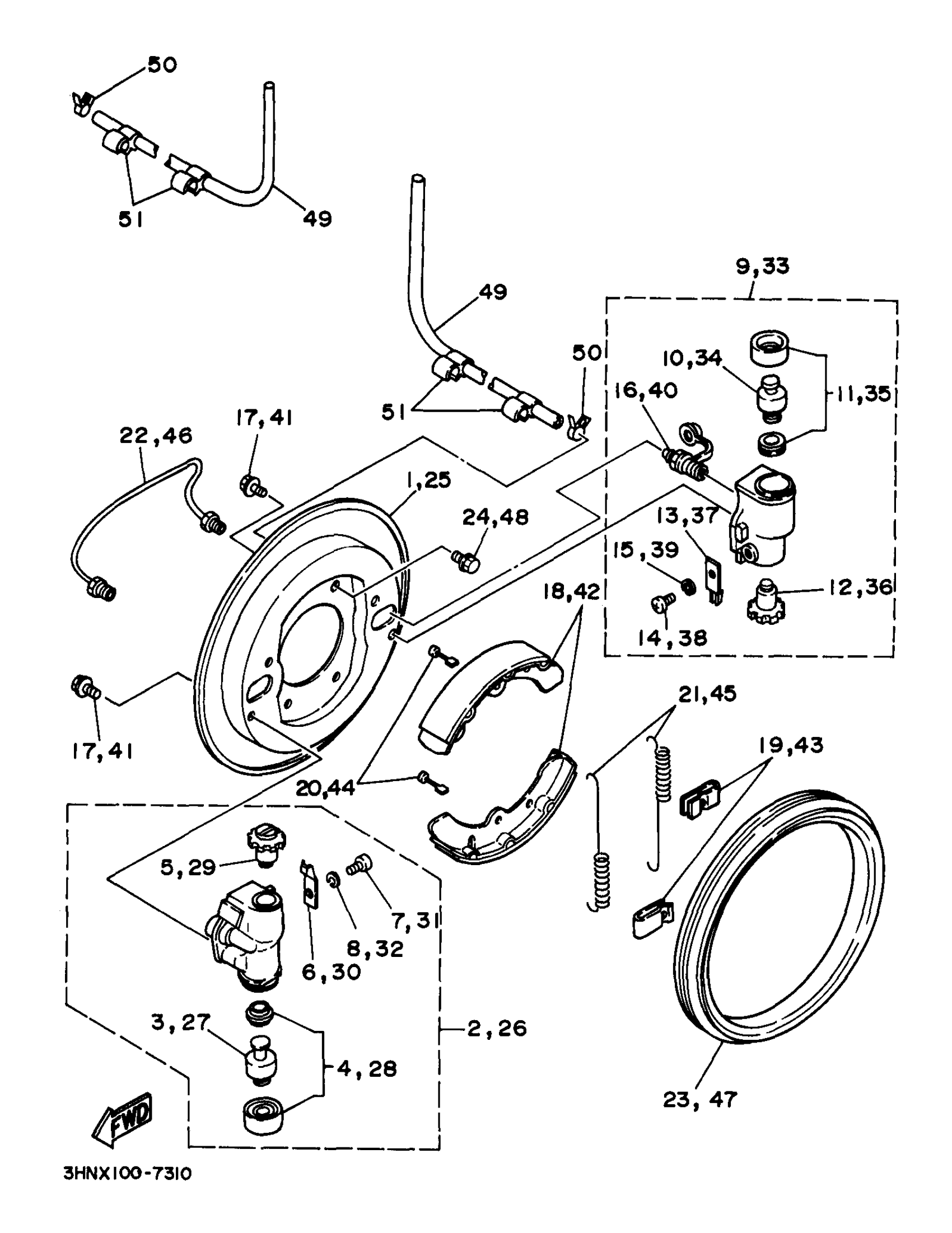 Yamaha YFM350FWJ (BIG BEAR 4WD) 3HNX 1997 FRONT BRAKE Diagram