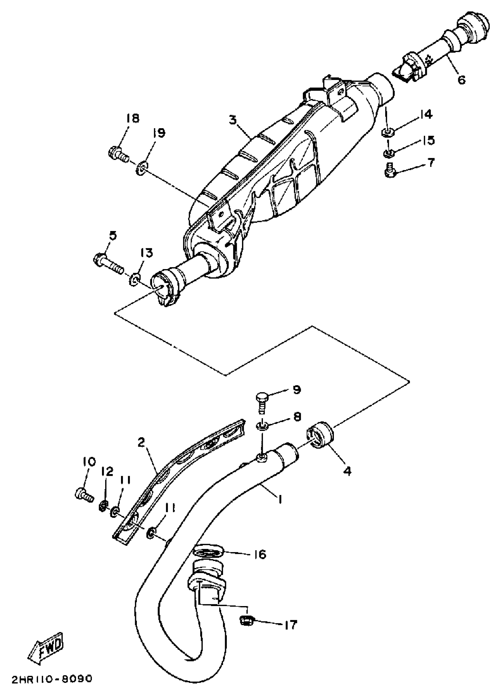 Yamaha YFM350FWU (BIG BEAR 4WD) 2HR 1988 EXHAUST Diagram