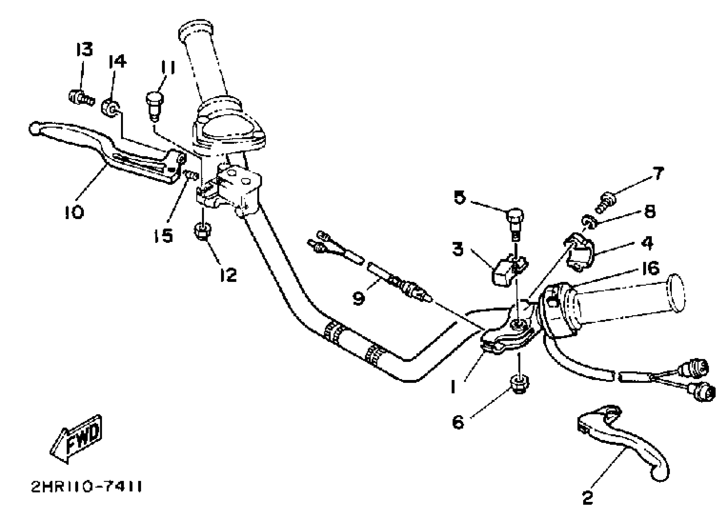 Yamaha YFM350FWU (BIG BEAR 4WD) 2HR 1988 HANDLE SWITCH-LEVER Diagram