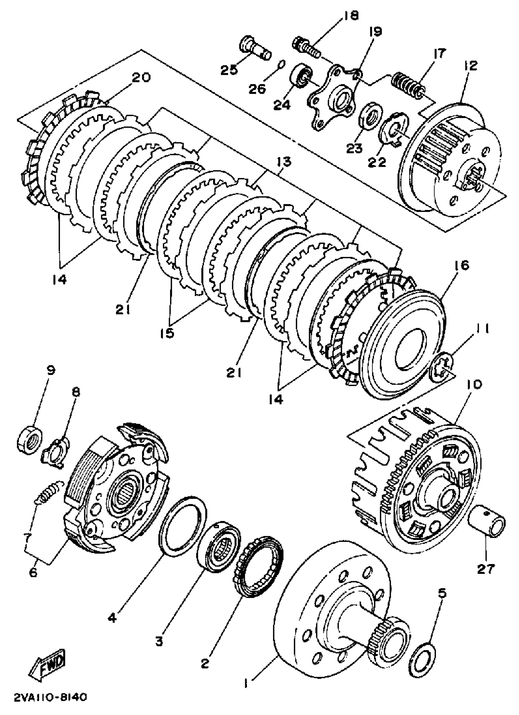 Yamaha YFM350FWW (BIG BEAR 4WD) 3HN1 1989 CLUTCH Diagram