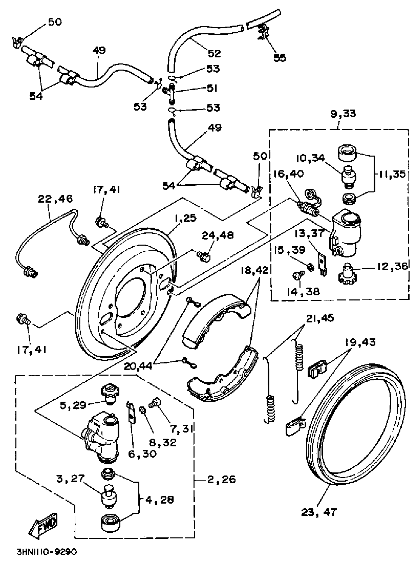 Yamaha YFM350FWW (BIG BEAR 4WD) 3HN1 1989 FRONT BRAKE Diagram