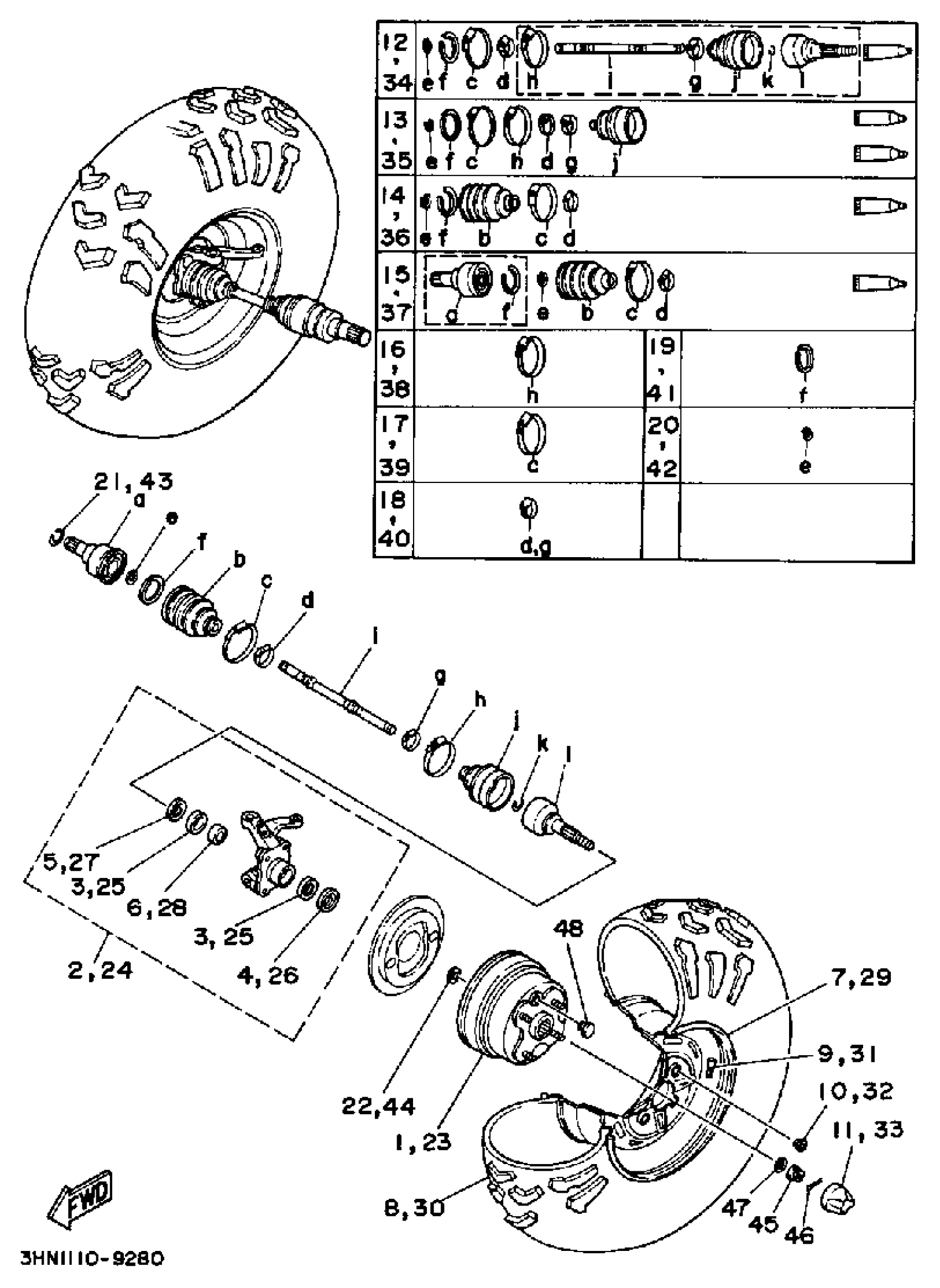 Yamaha YFM350FWW (BIG BEAR 4WD) 3HN1 1989 FRONT WHEEL Diagram