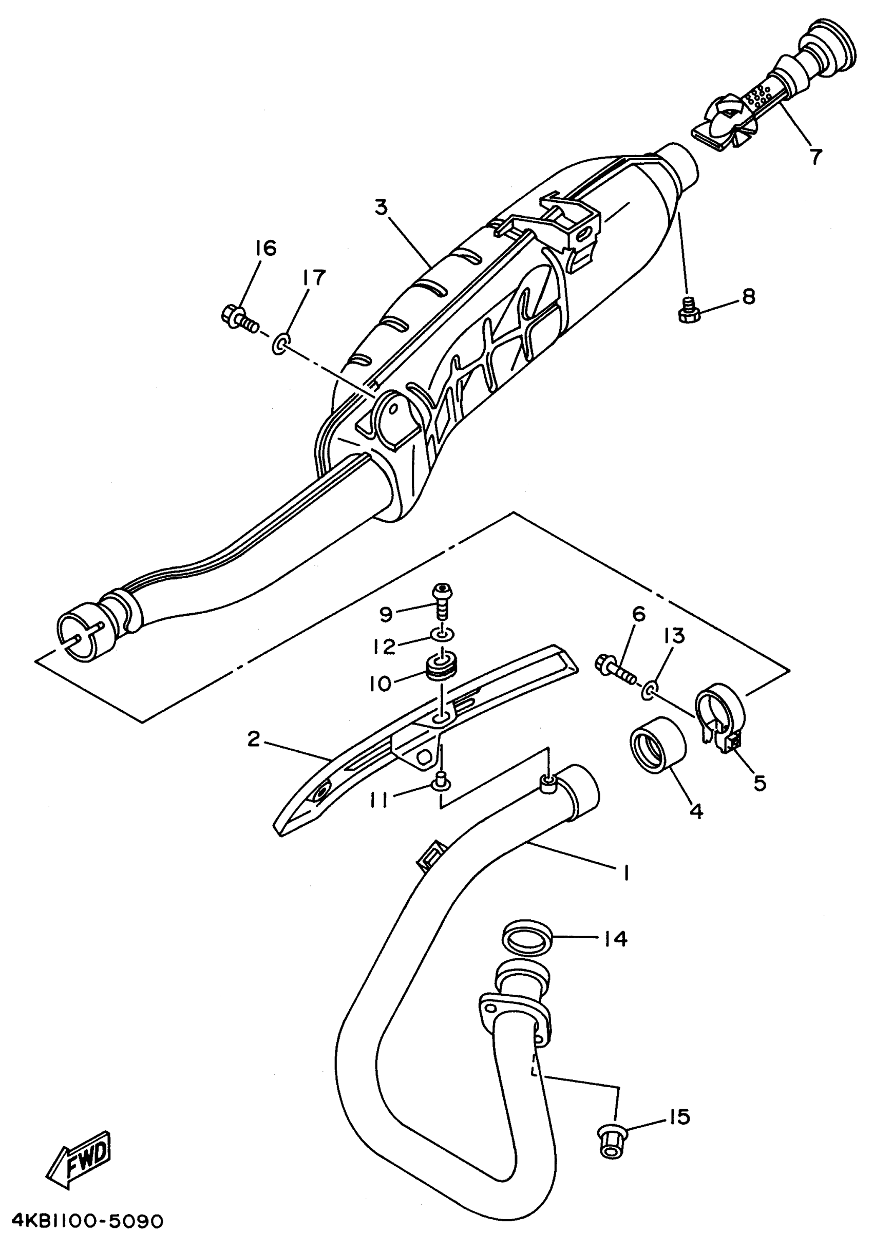 Yamaha YFM350FXH_MNH (WOLVERINE 4WD) 1996 EXHAUST Diagram