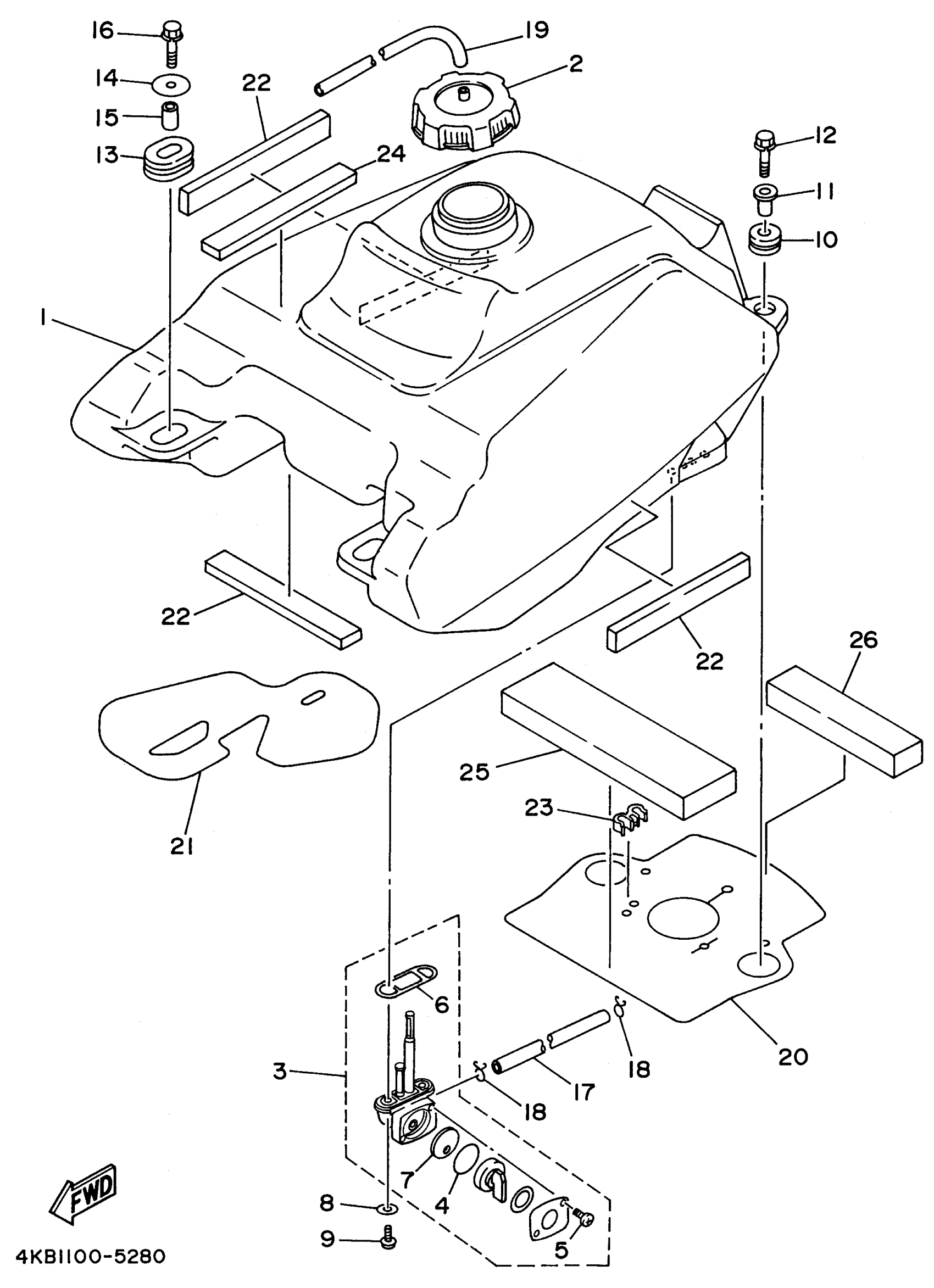 Yamaha YFM350FXH_MNH (WOLVERINE 4WD) 1996 FUEL TANK Diagram