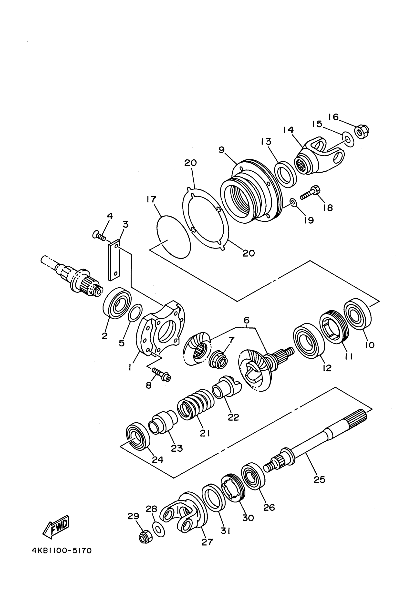 Yamaha YFM350FXH (WOLVERINE 4WD) 4KB3 1996 MIDDLE DRIVE GEAR Diagram