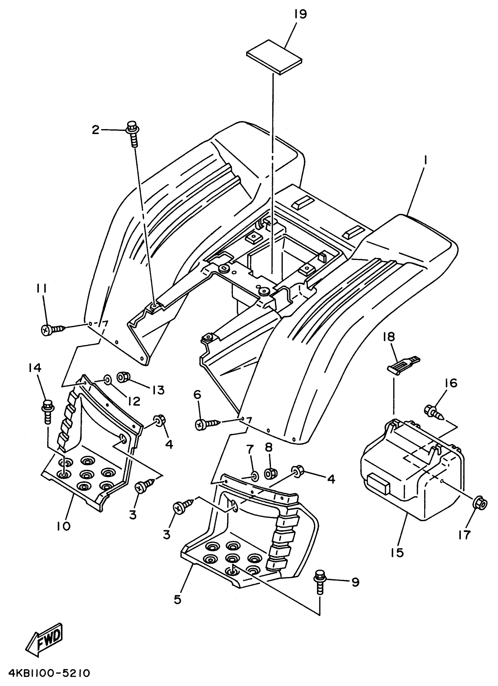 Yamaha YFM350FXH (WOLVERINE 4WD) 4KB3 1996 REAR FENDER Diagram