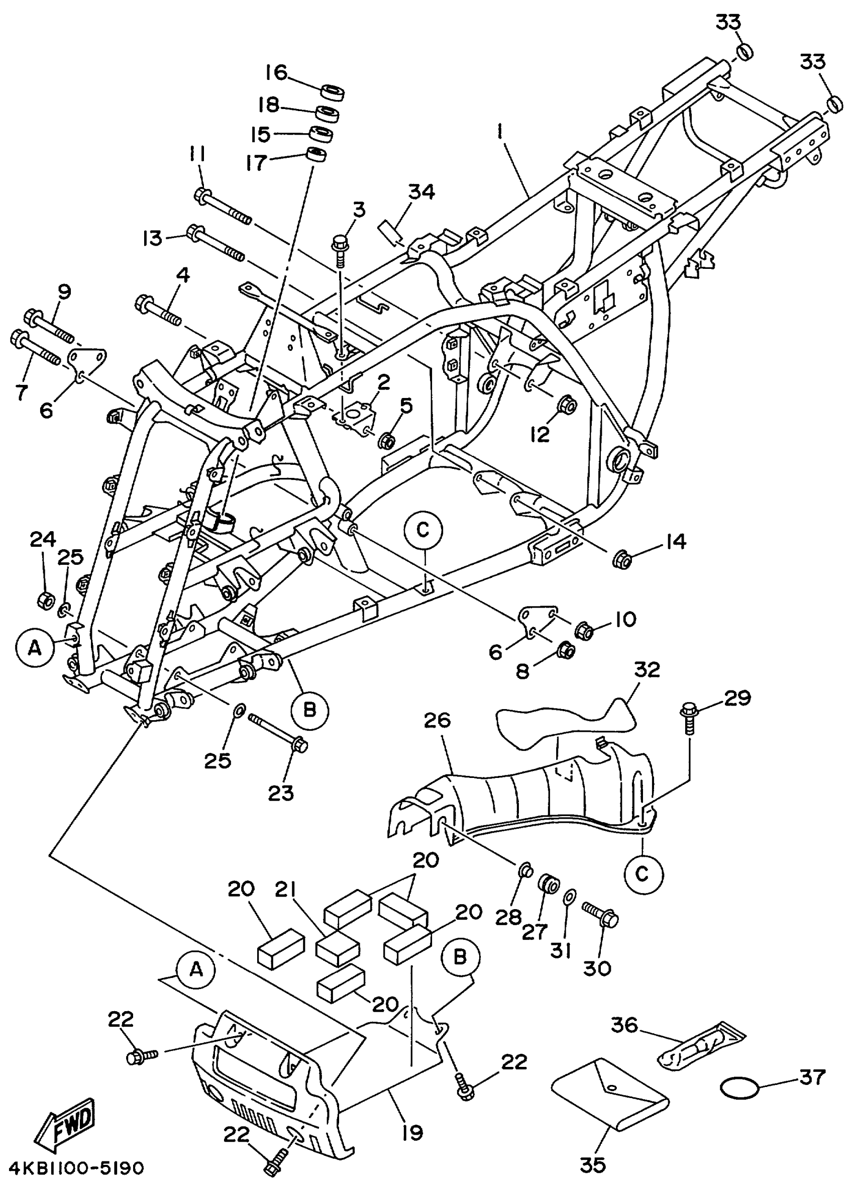 Yamaha YFM350FXLC (WOLVERINE 4WD) 4KBC 1999 FRAME Diagram