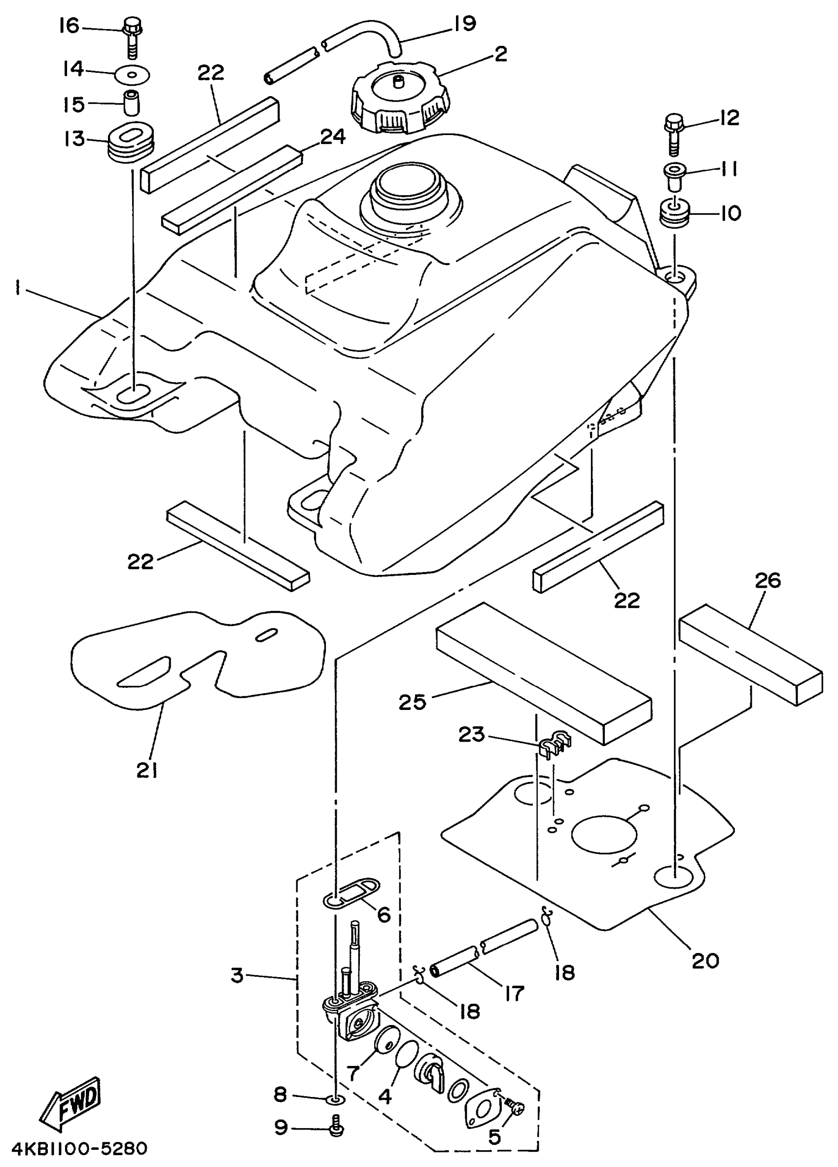 Yamaha YFM350FXLC (WOLVERINE 4WD) 4KBC 1999 FUEL TANK Diagram