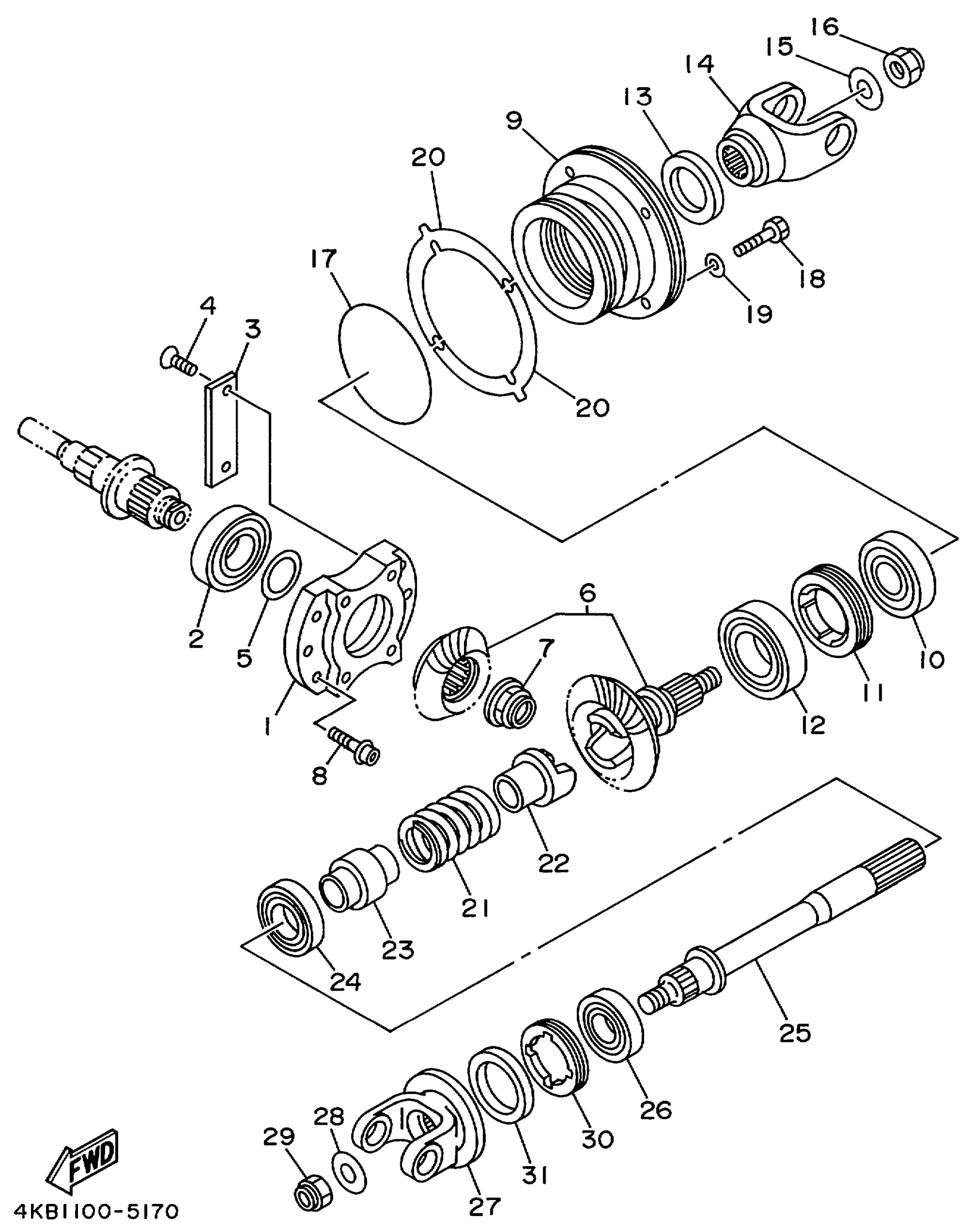 Yamaha YFM350FXLC (WOLVERINE 4WD) 4KBC 1999 MIDDLE DRIVE GEAR Diagram