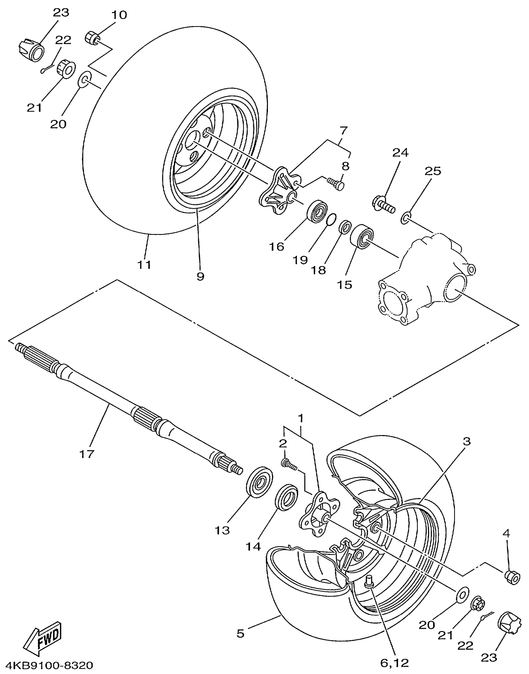 Yamaha YFM350FXLC (WOLVERINE 4WD) 4KBC 1999 REAR WHEEL Diagram