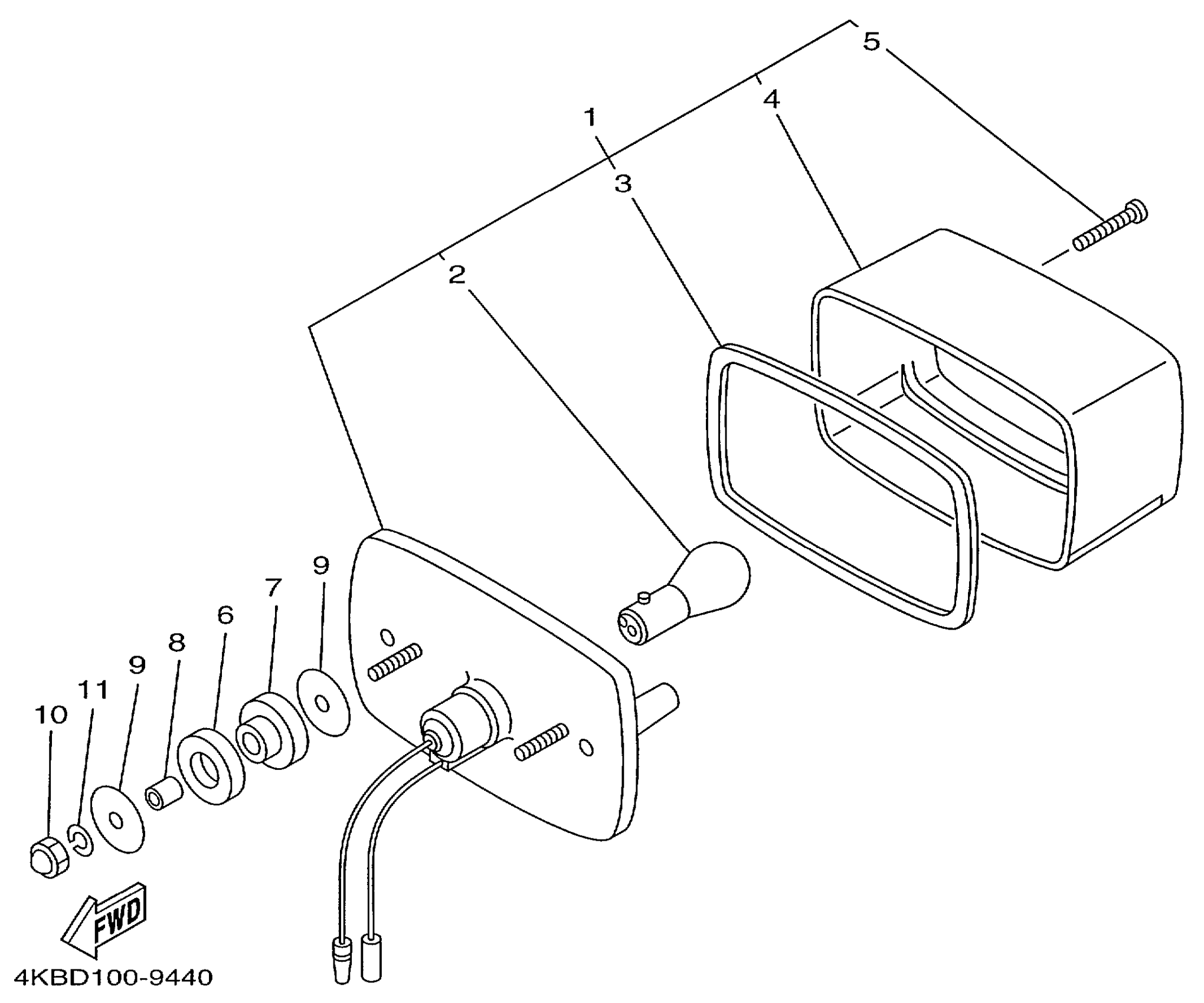 Yamaha YFM350FXLC (WOLVERINE 4WD) 4KBC 1999 TAILLIGHT Diagram