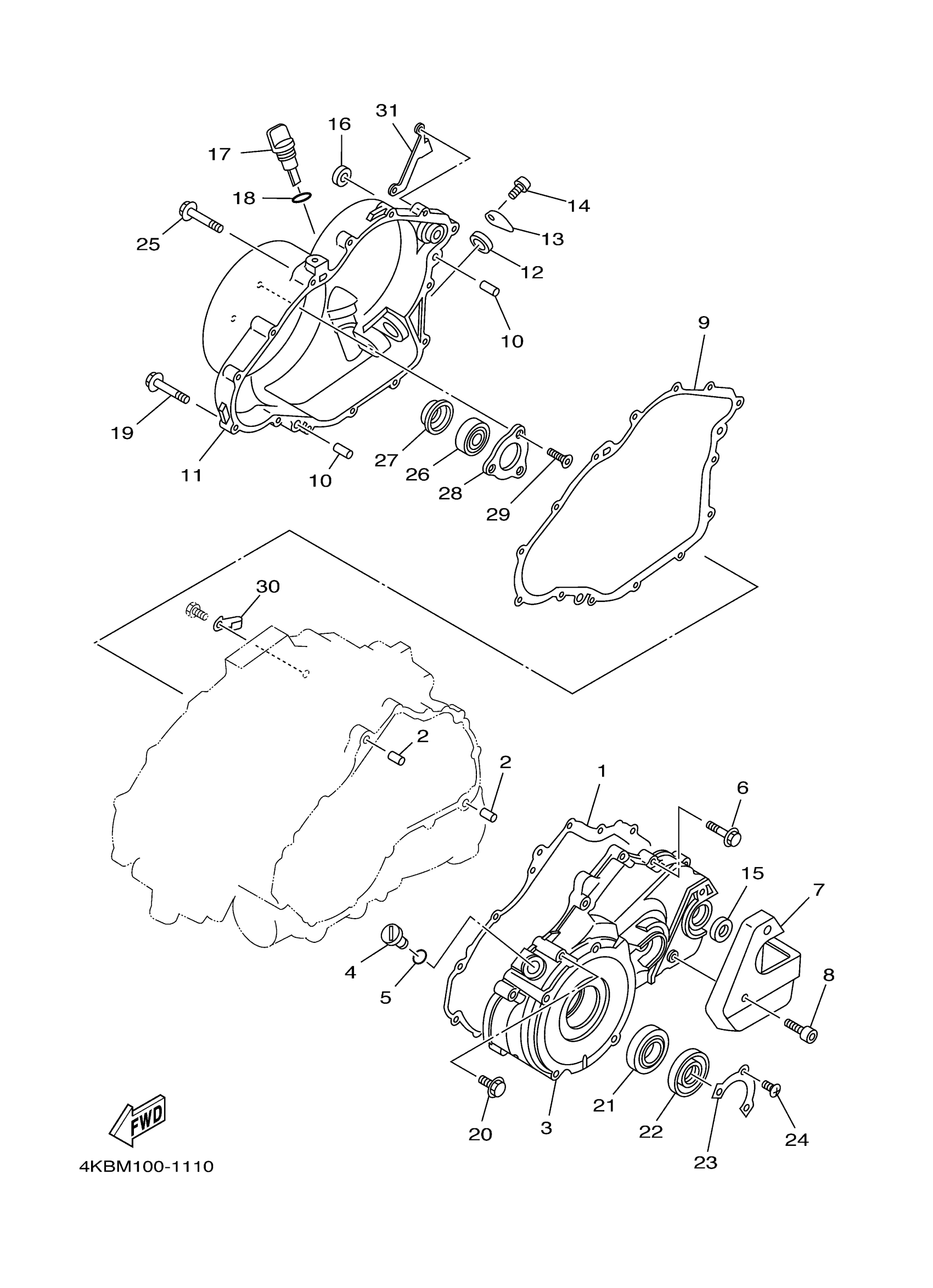 Yamaha YFM350FXR (WOLVERINE 4WD) 4KBV 2003 CRANKCASE COVER 1 Diagram
