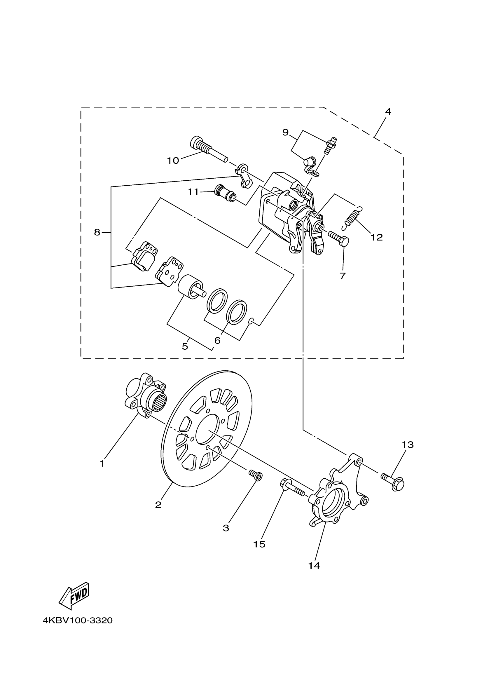 Yamaha YFM350FXR (WOLVERINE 4WD) 4KBV 2003 REAR BRAKE CALIPER Diagram