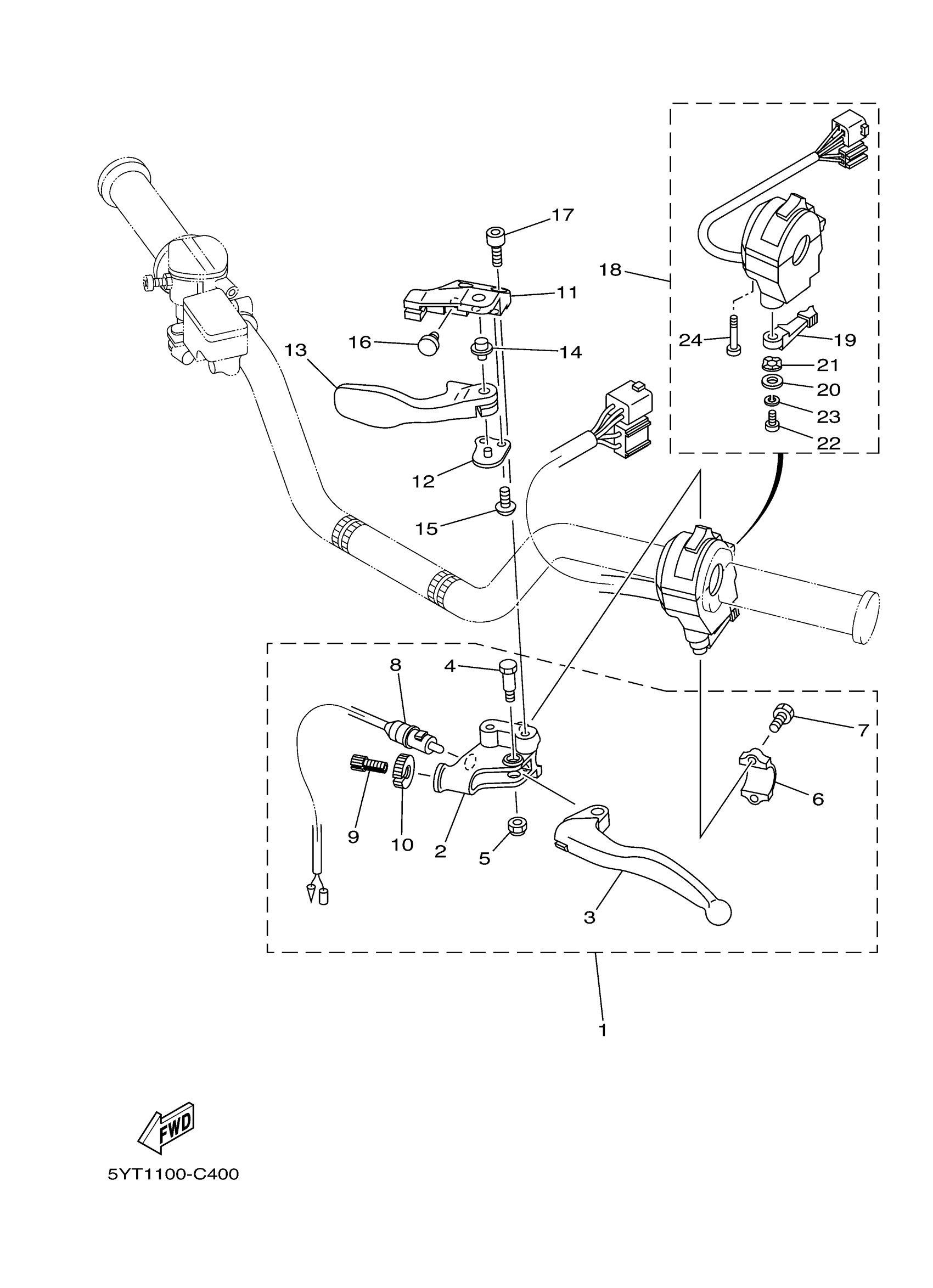 Yamaha YFM350RT (RAPTOR 350) 5YT5 2005 HANDLE SWITCH LEVER Diagram