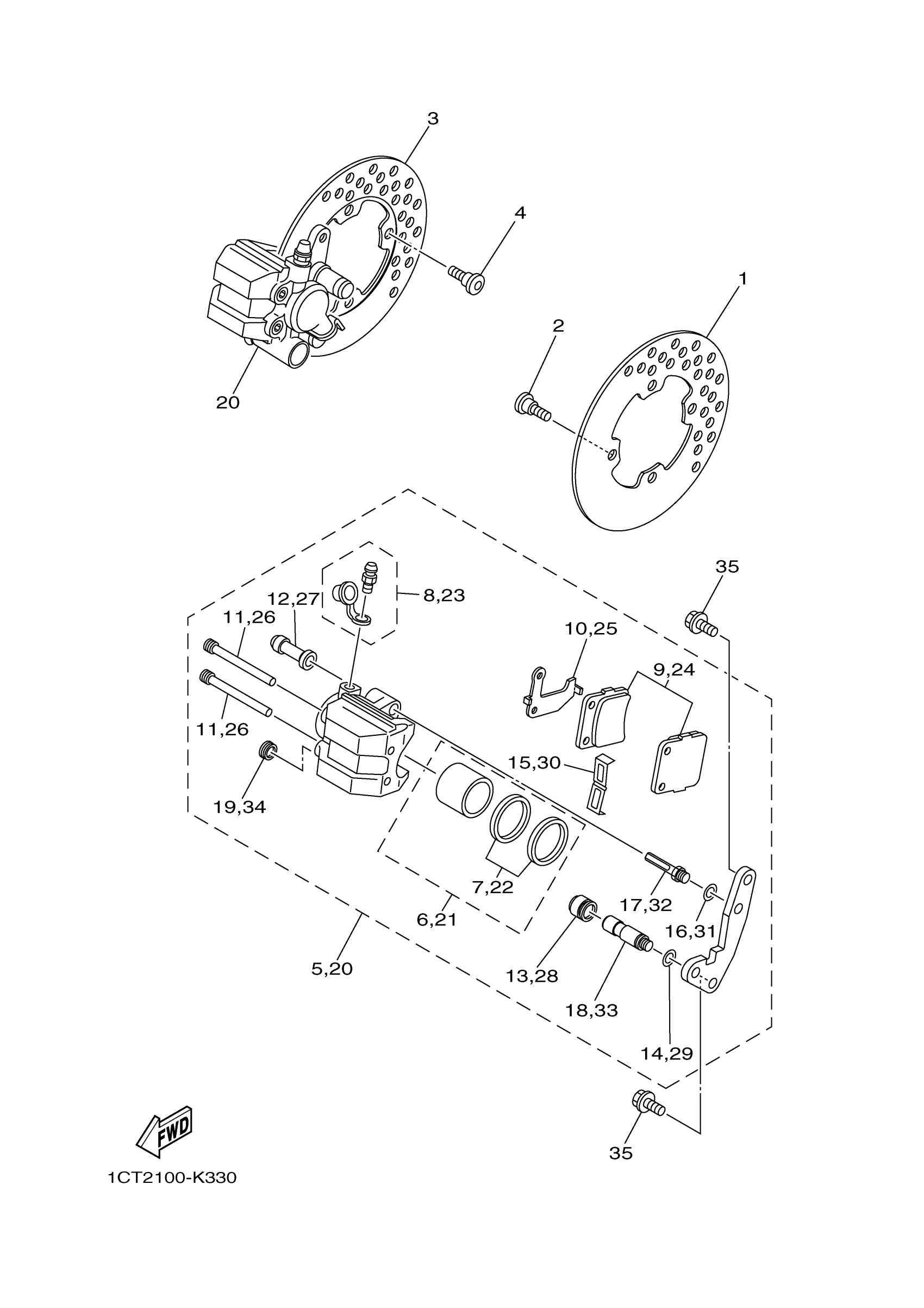 Yamaha YFM350TER (GRIZZLY 350 2WD) B1412 2014 FRONT BRAKE CALIPER Diagram