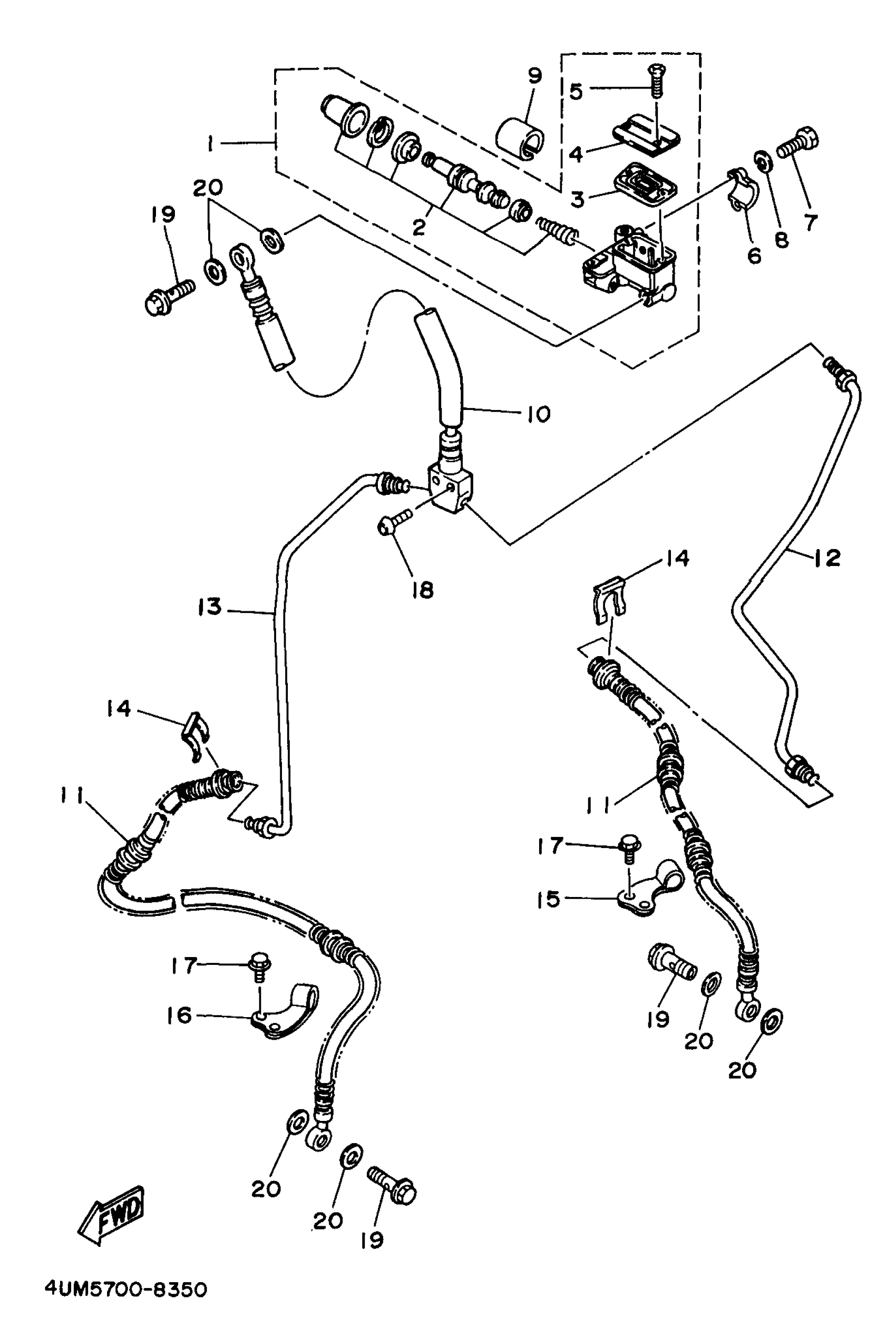 Yamaha YFM350UK (BIG BEAR 2WD) 4UH7 1998 FRONT MASTER CYLINDER Diagram