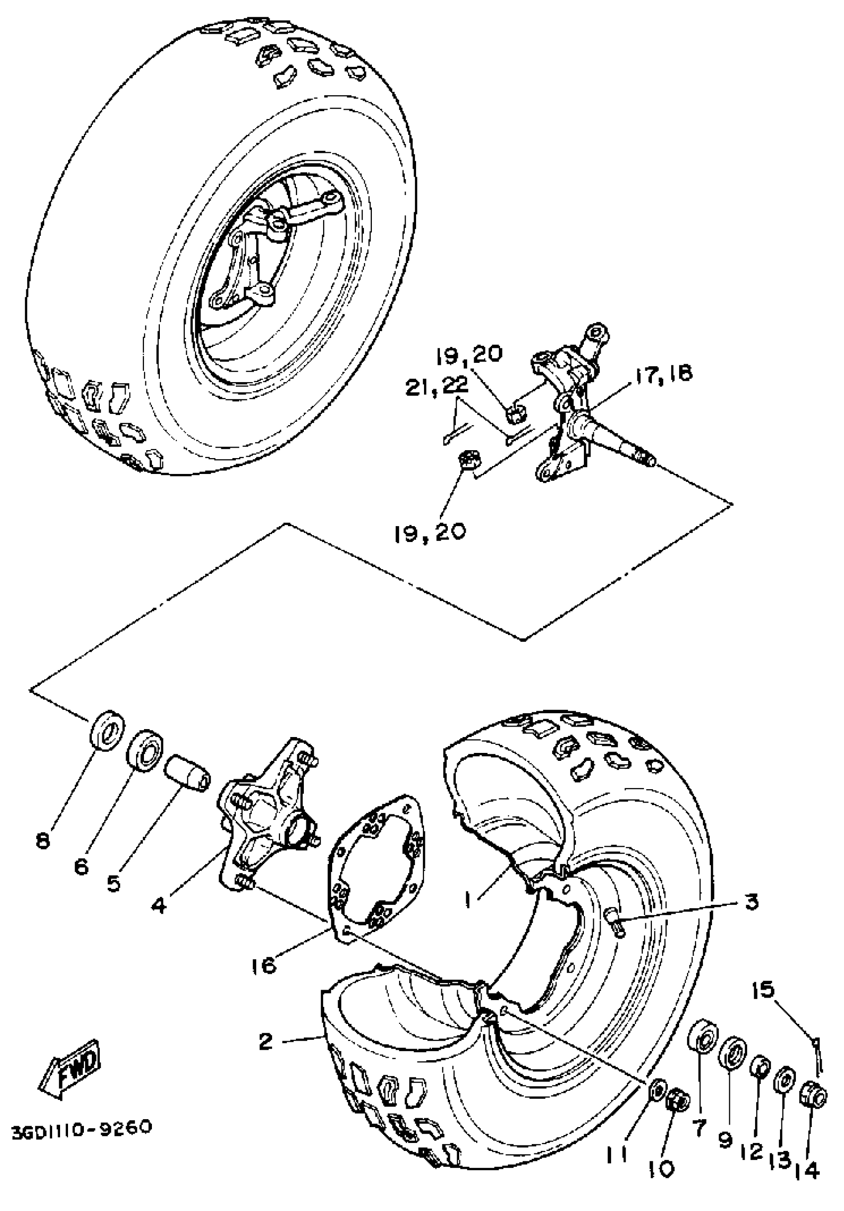 Yamaha YFM350XA (WARRIOR) 3GD 1990 FRONT WHEEL Diagram
