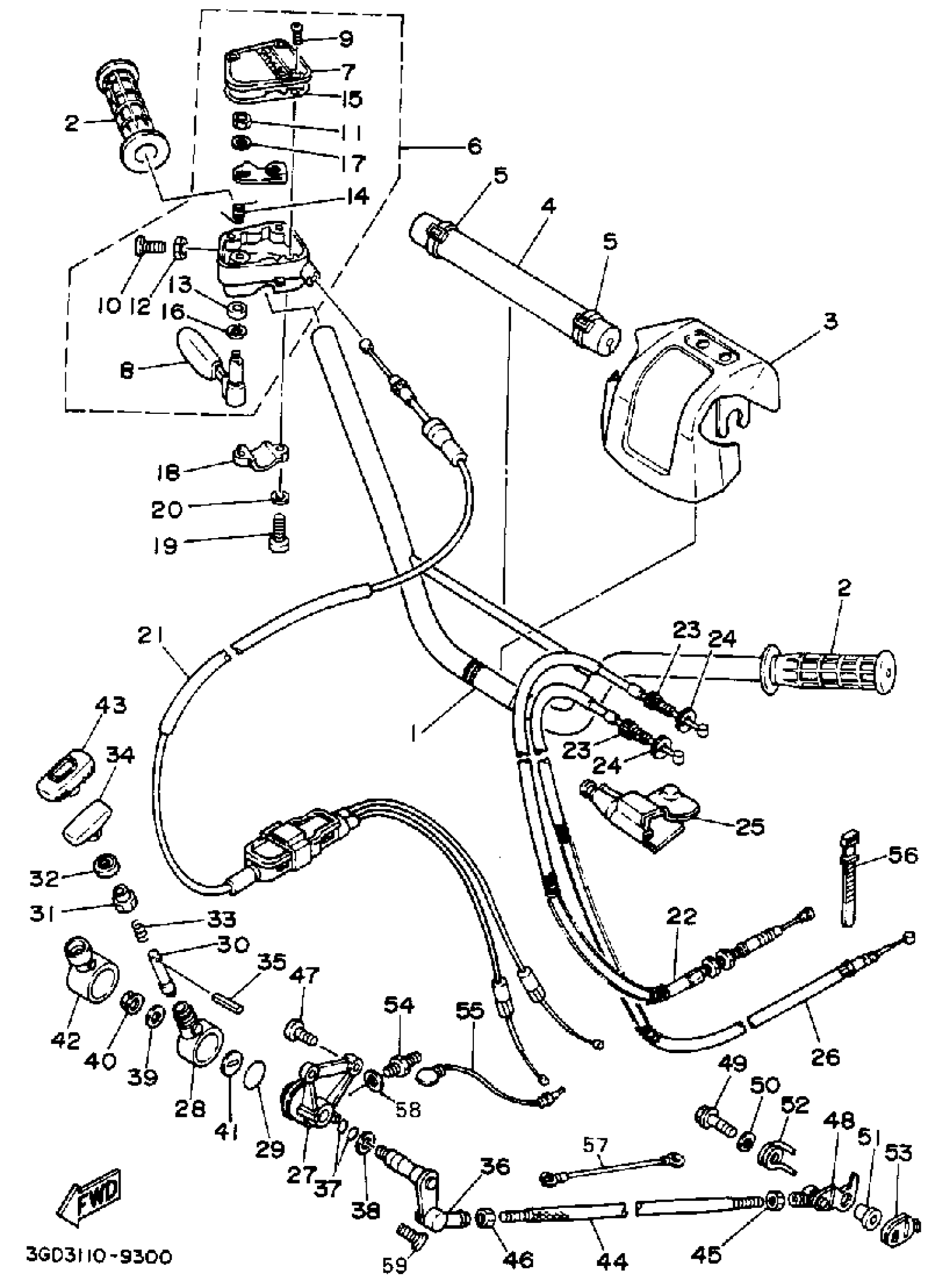 Yamaha YFM350XA (WARRIOR) 3GD 1990 HANDLEBAR CABLE Diagram
