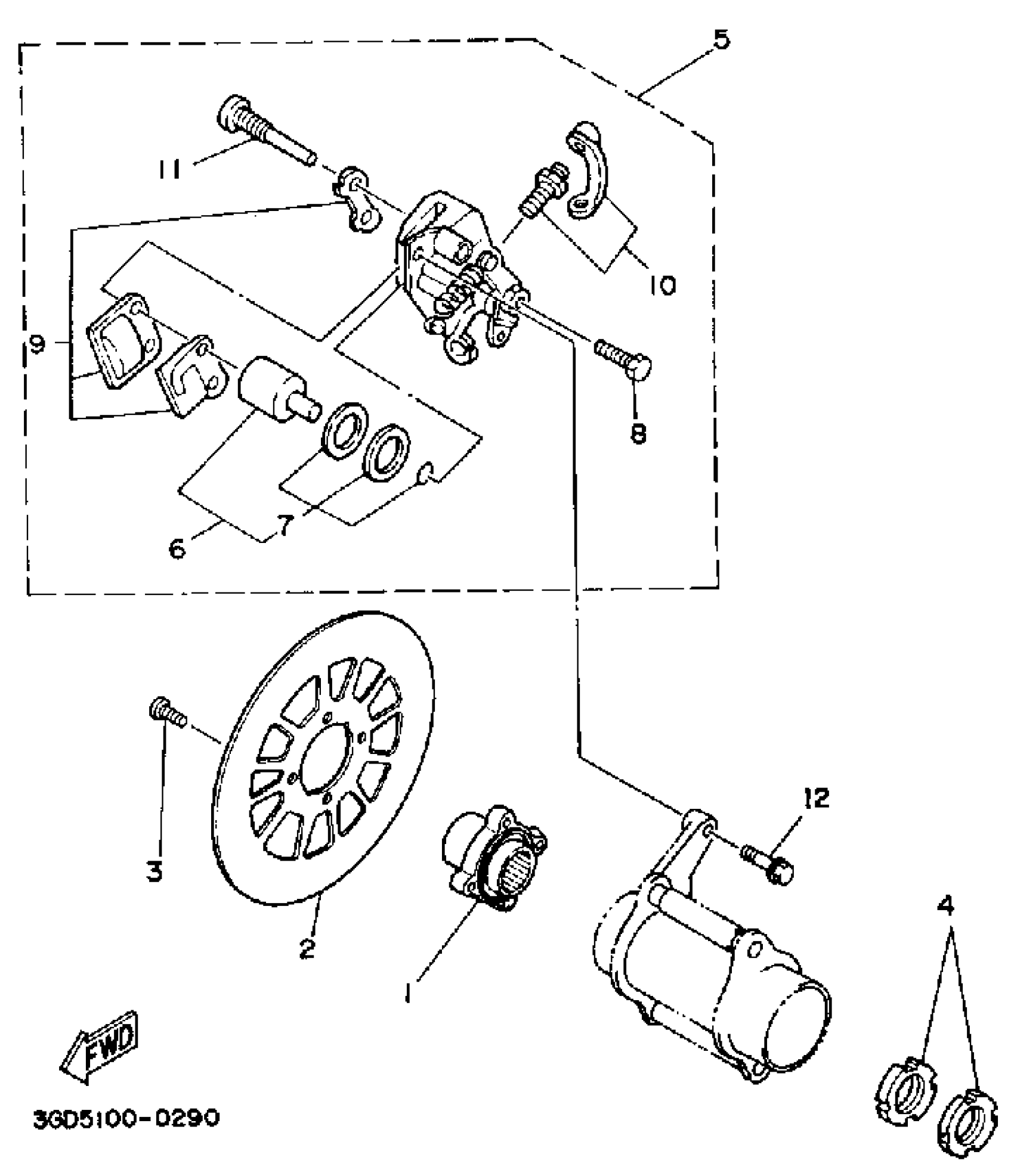 Yamaha YFM350XA (WARRIOR) 3GD 1990 REAR BRAKE CALIPER Diagram
