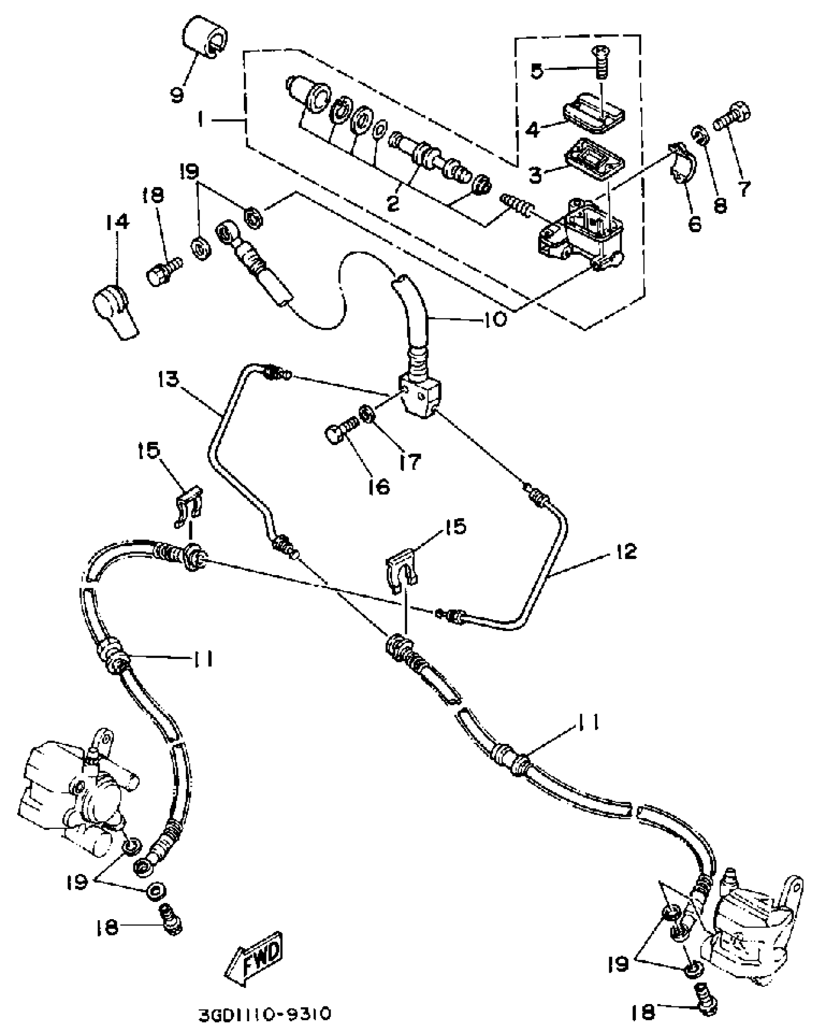 Yamaha YFM350XB (WARRIOR) 3GD 1991 FRONT MASTER CYLINDER Diagram
