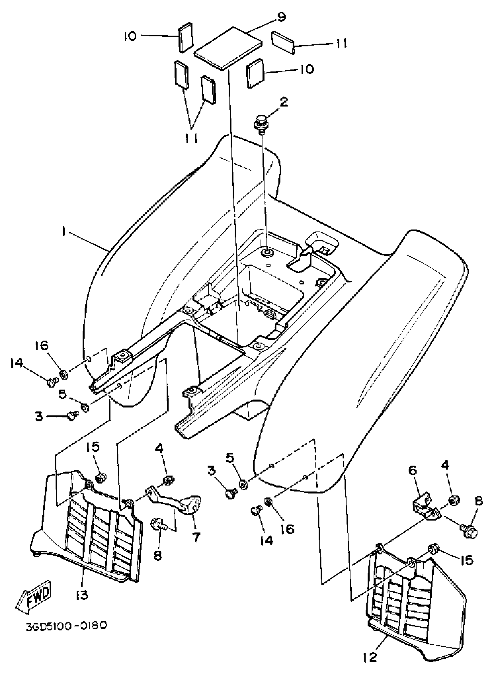Yamaha YFM350XB (WARRIOR) 3GD 1991 REAR FENDER Diagram