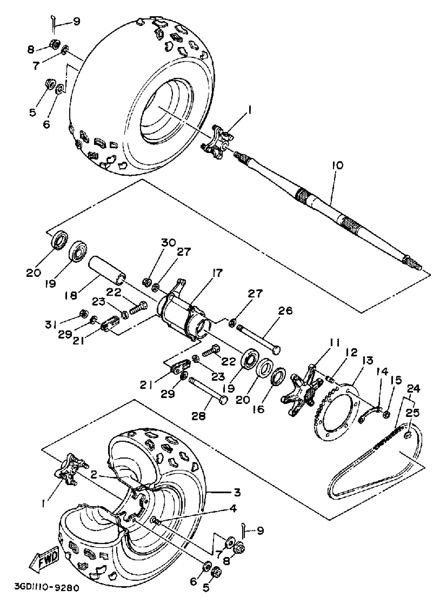 Yamaha YFM350XB (WARRIOR) 3GD 1991 REAR WHEEL Diagram