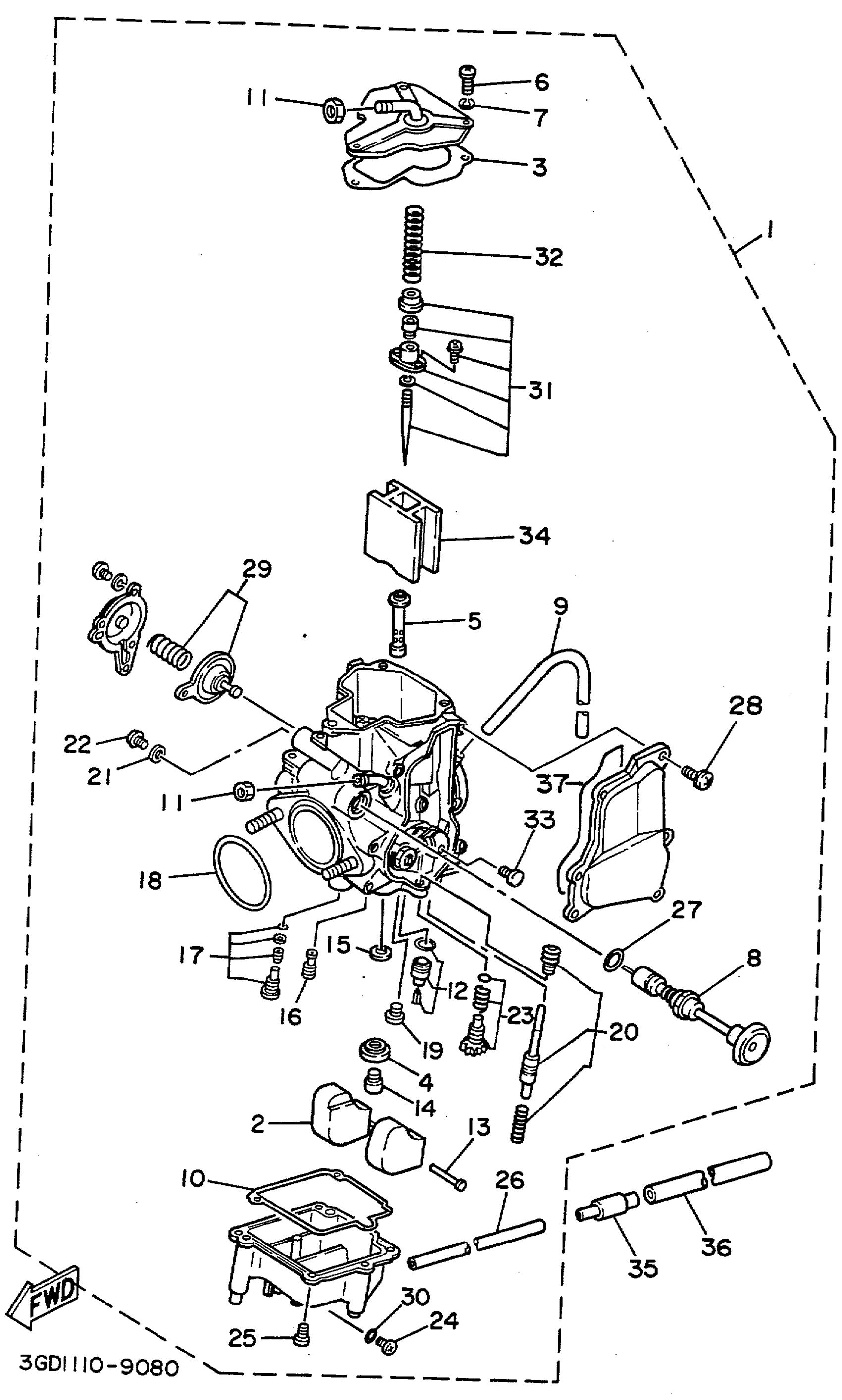 Yamaha YFM350XD_MNH (WARRIOR) 3GD9 1992 CARBURETOR Diagram