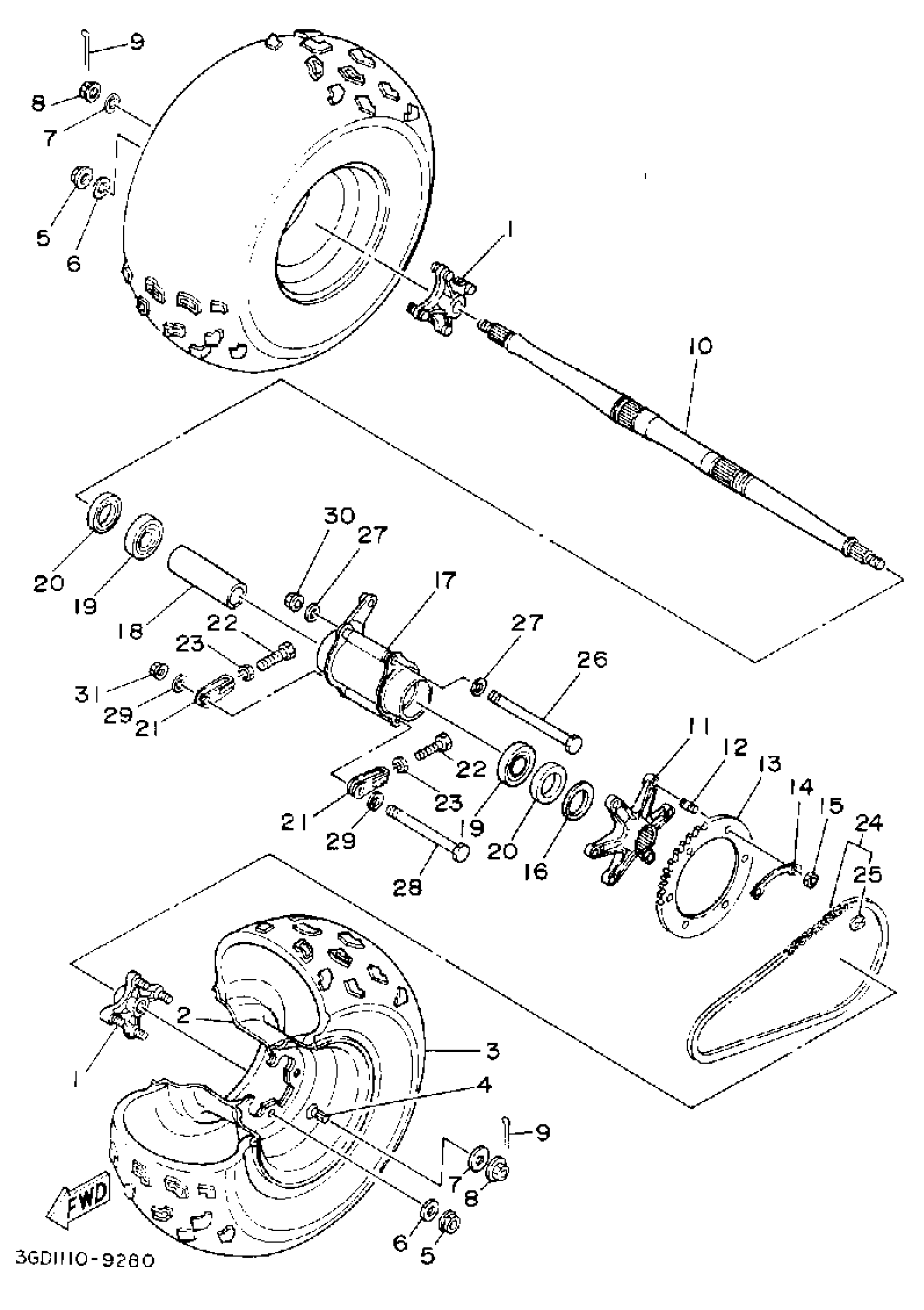 Yamaha YFM350XD (WARRIOR) 3GD 1992 REAR WHEEL Diagram