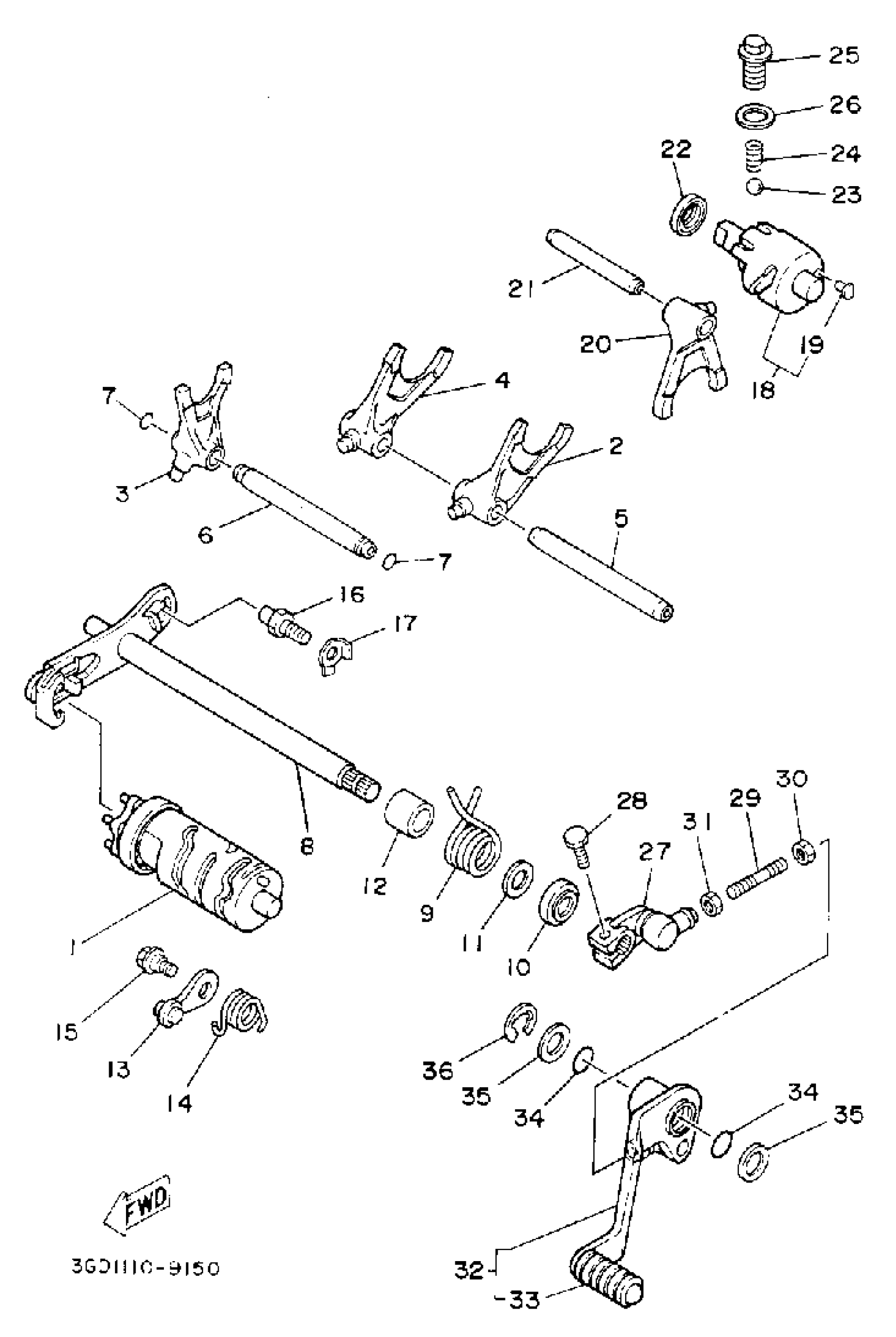 Yamaha YFM350XD (WARRIOR) 3GD 1992 SHIFT CAM-FORK Diagram