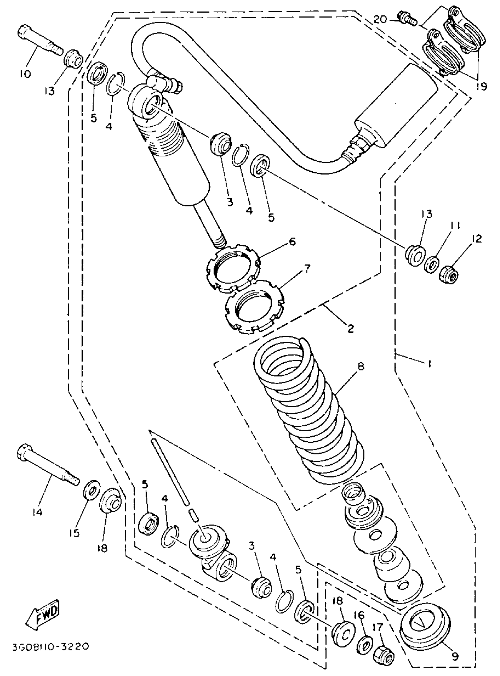 Yamaha YFM350XE_MNH (WARRIOR) 3GD 1993 REAR SHOCKS Diagram