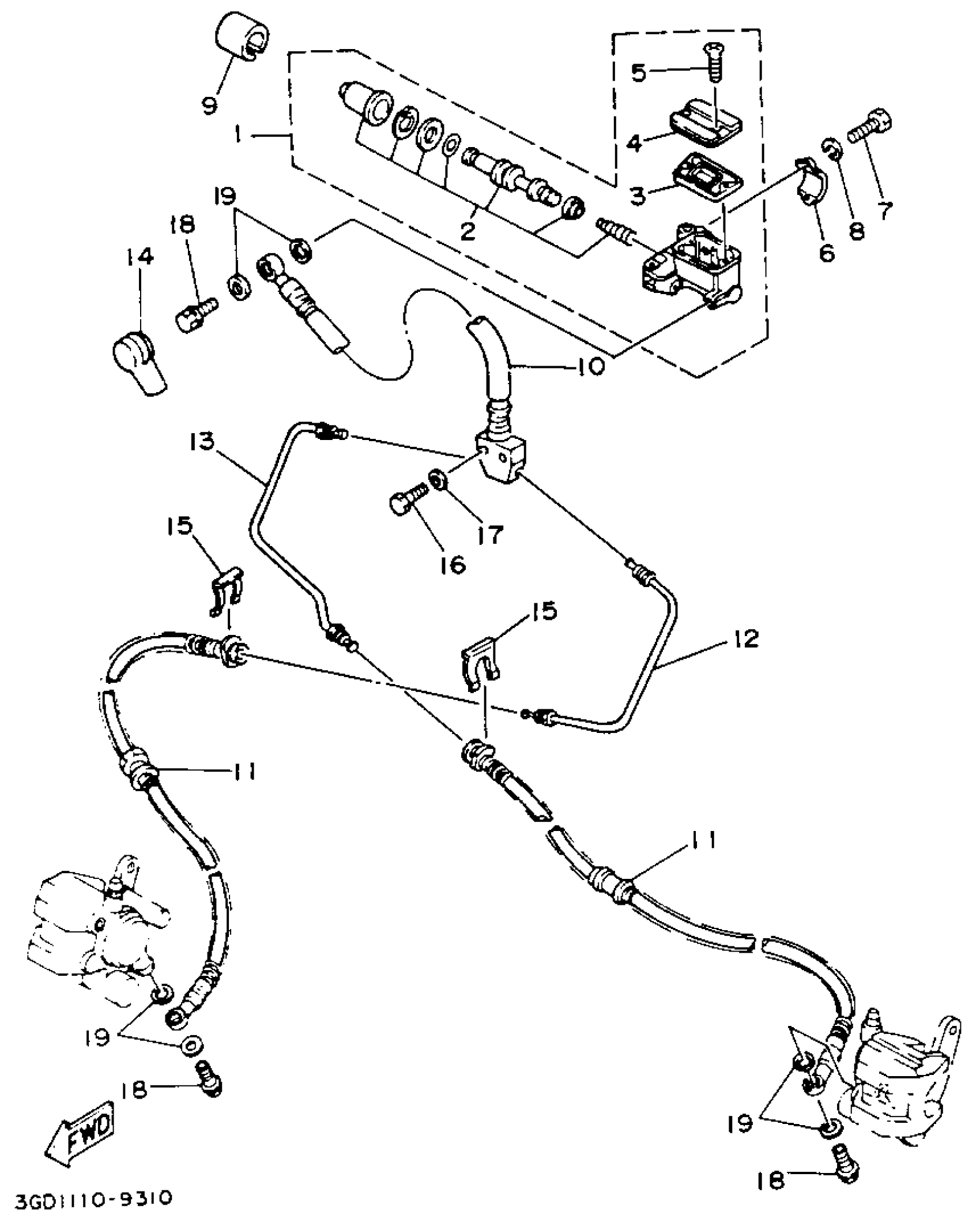 Yamaha YFM350XE (WARRIOR) 3GD 1993 FRONT MASTER CYLINDER Diagram