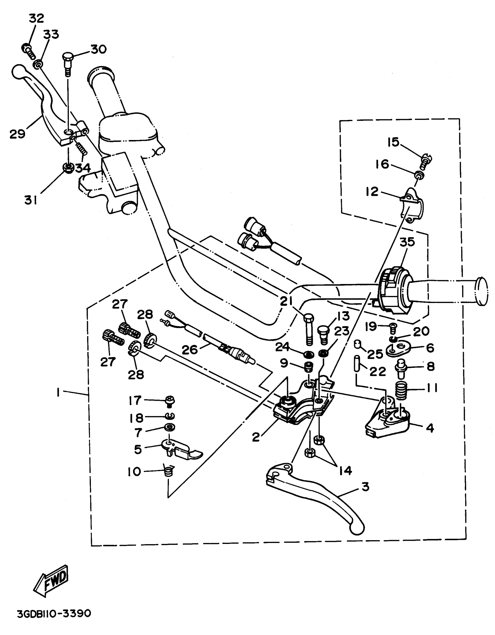 Yamaha YFM350XG_MNH (WARRIOR) 3GDF 1995 HANDLE SWITCH LEVER Diagram