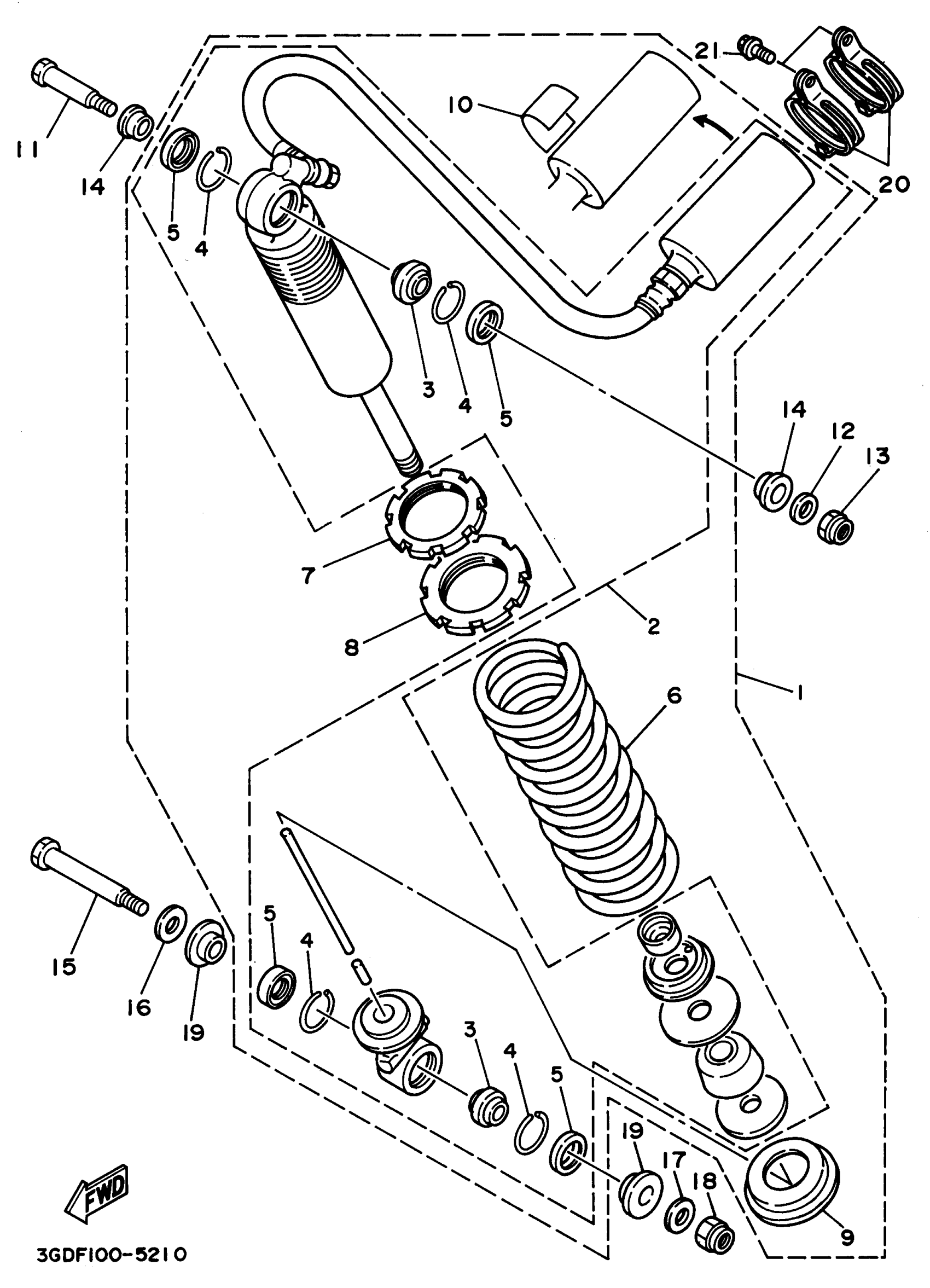 Yamaha YFM350XG_MNH (WARRIOR) 3GDF 1995 REAR SUSPENSION Diagram
