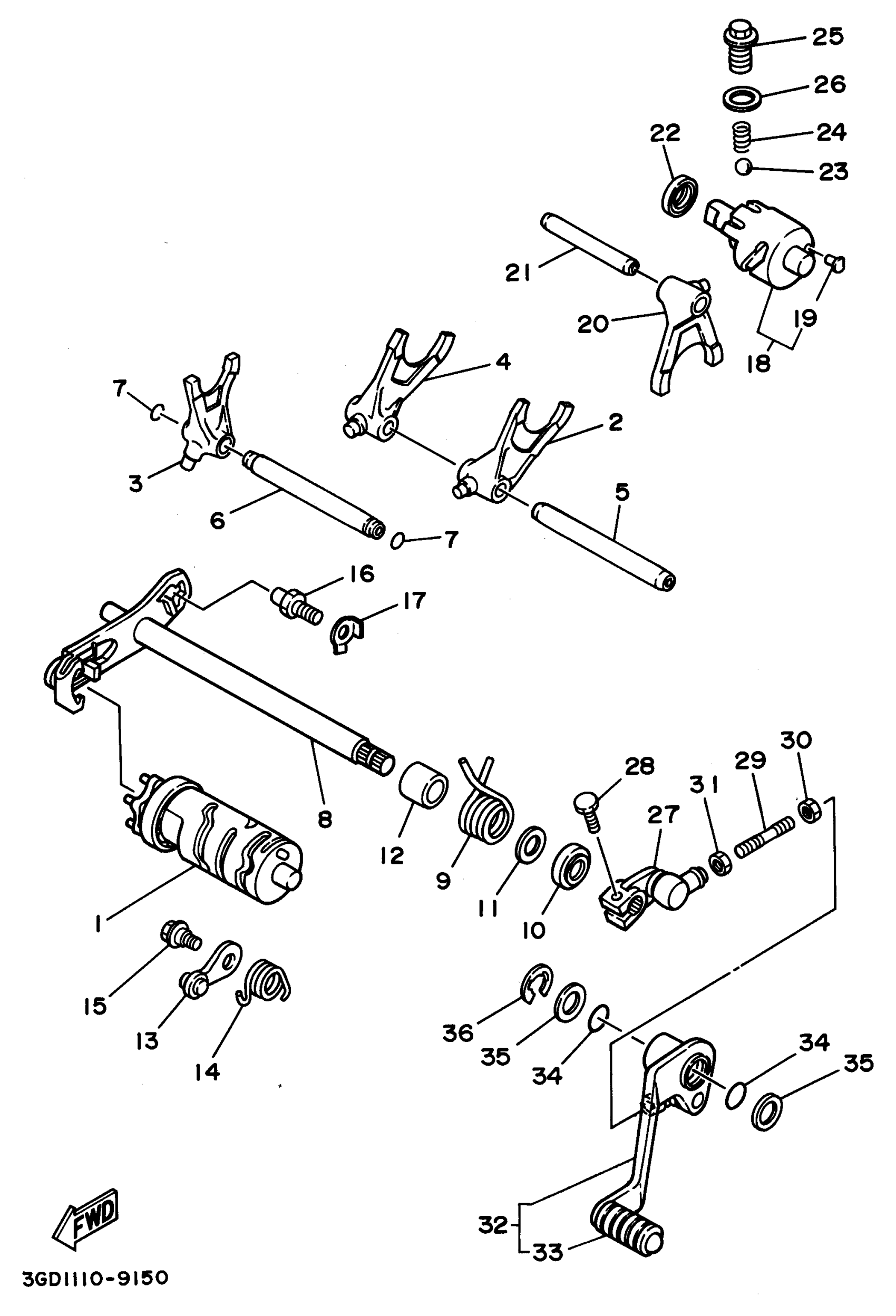 Yamaha YFM350XG_MNH (WARRIOR) 3GDF 1995 SHIFT CAM SHIFT FORK Diagram