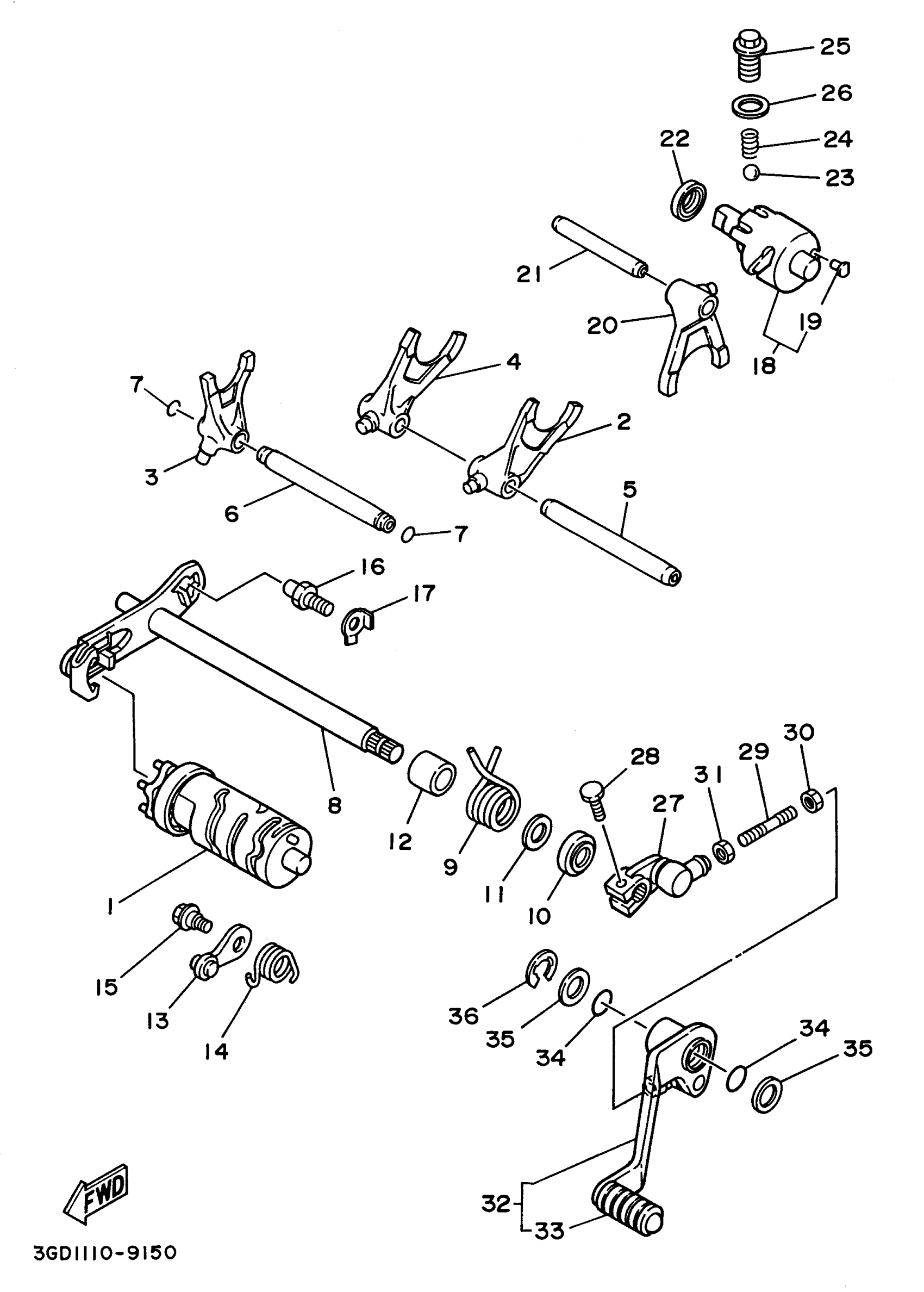 Yamaha YFM350XH_MNH (WARRIOR) 3GDH 1996 SHIFT CAM SHIFT FORK Diagram