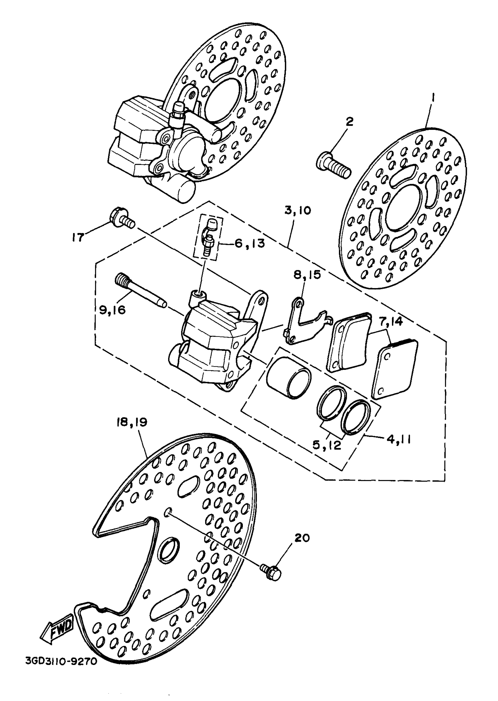 Yamaha YFM350XJ_MNH (WARRIOR) 3GDK 1997 FRONT BRAKE CALIPER Diagram