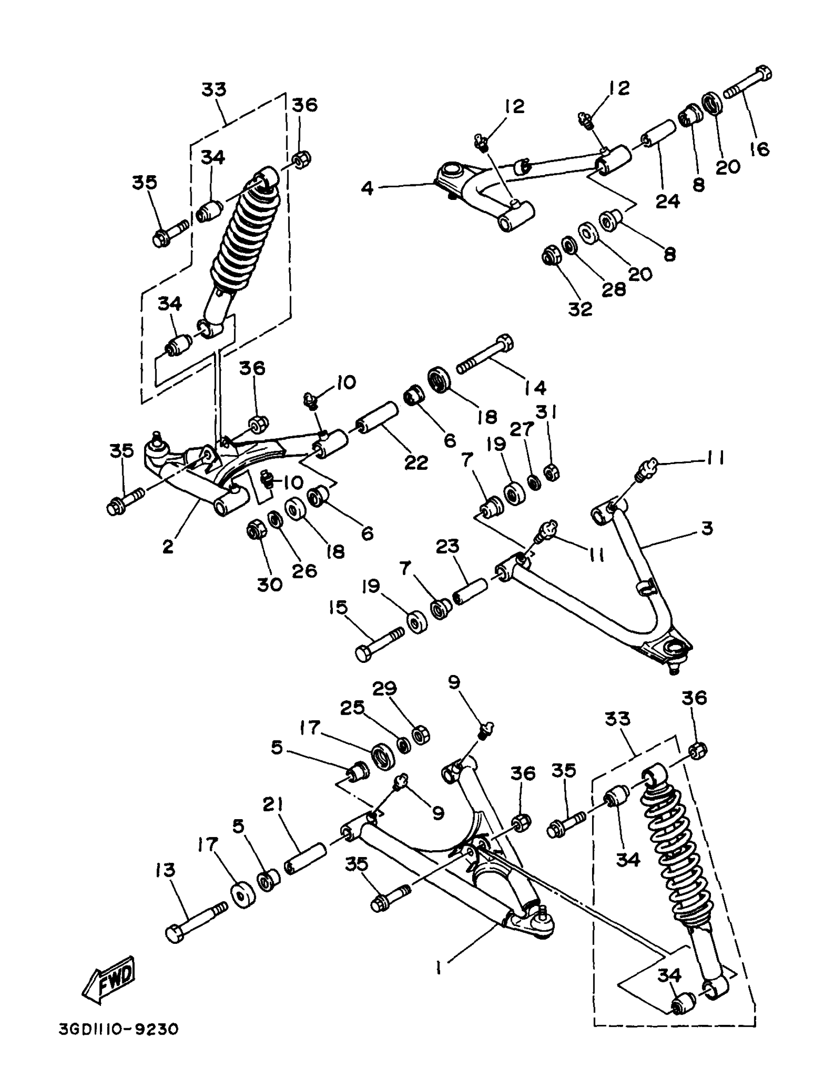 Yamaha YFM350XJ_MNH (WARRIOR) 3GDK 1997 FRONT SUSPENSION WHEEL Diagram