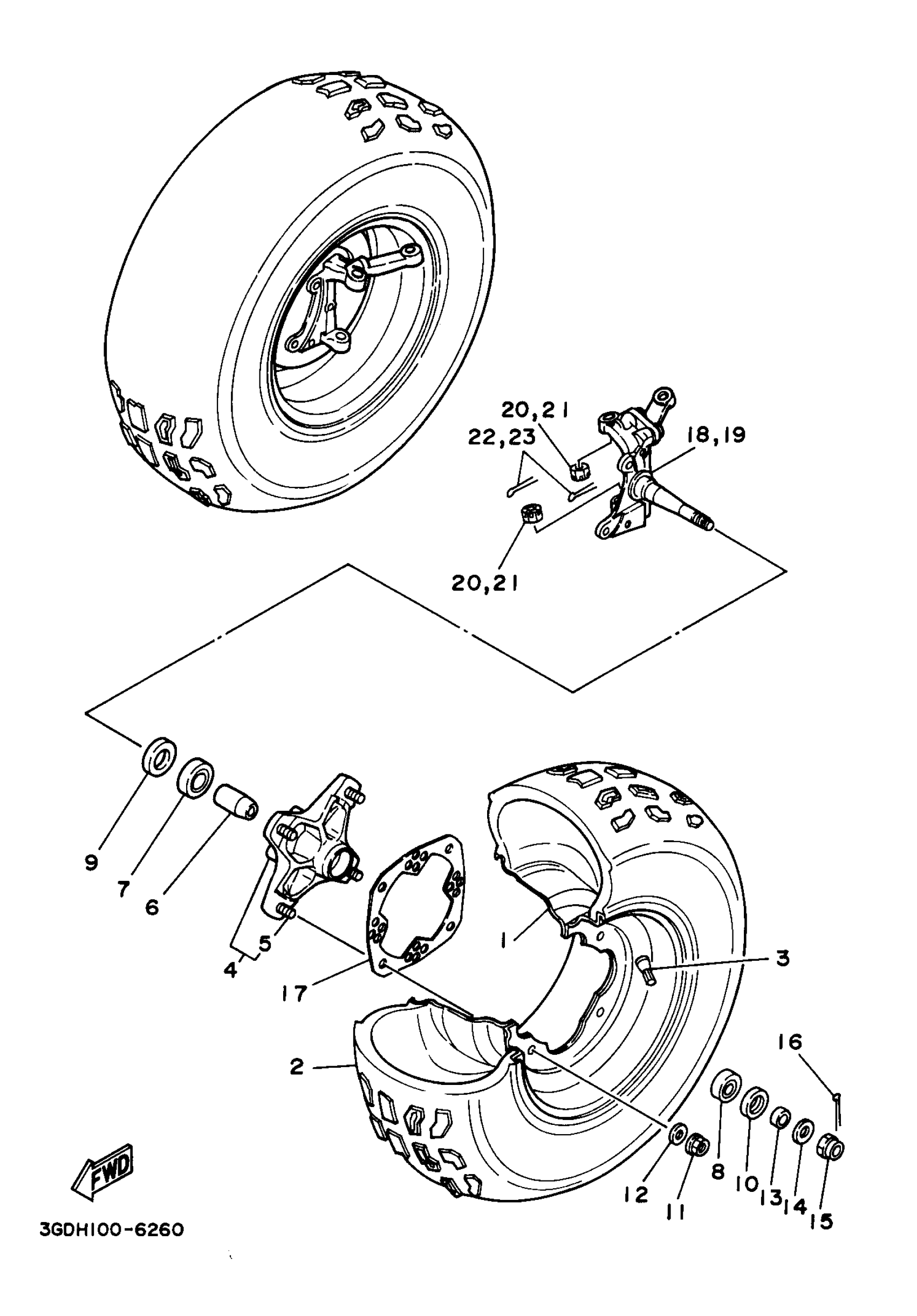 Yamaha YFM350XJ_MNH (WARRIOR) 3GDK 1997 FRONT WHEEL Diagram