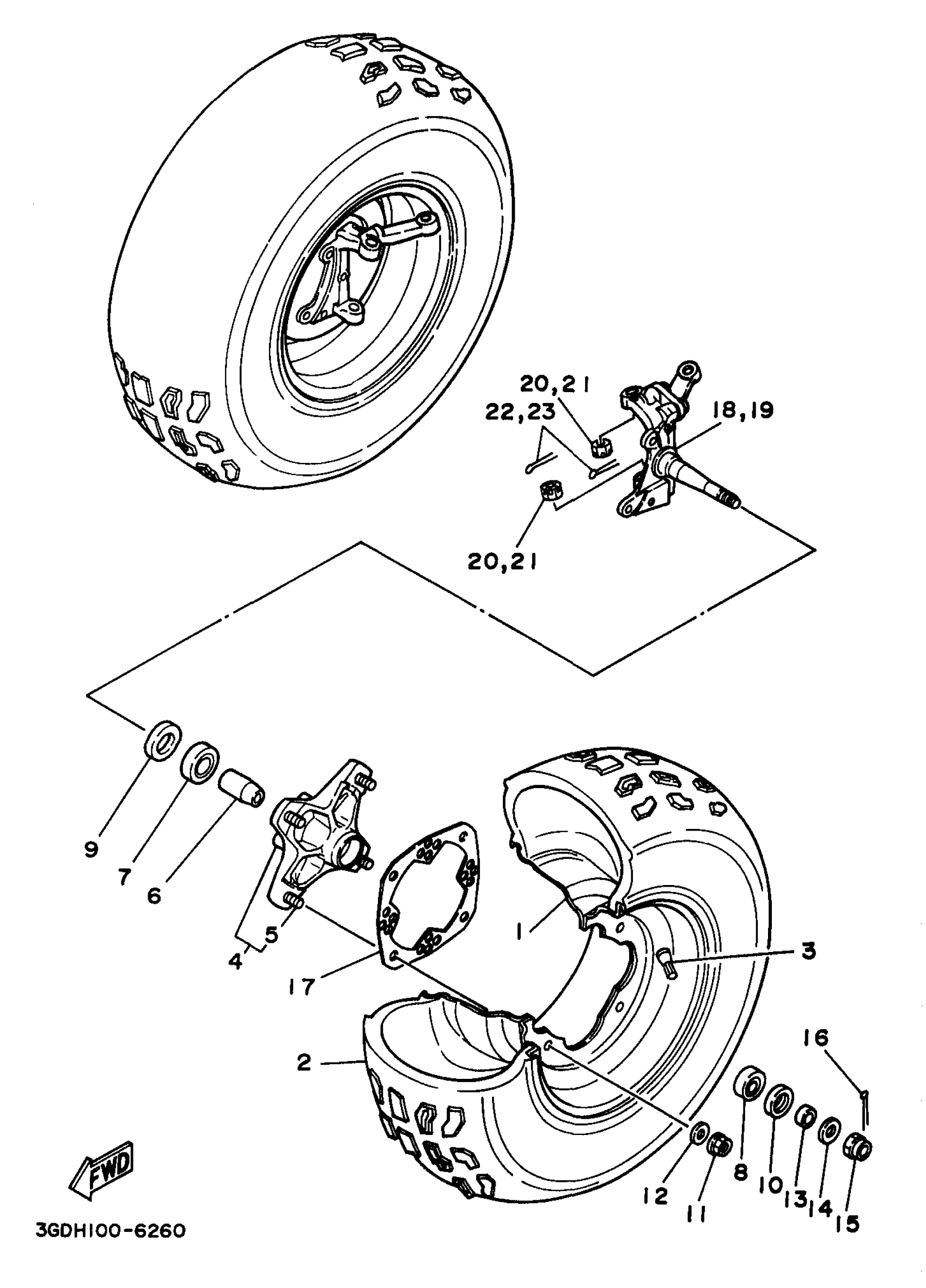 Yamaha YFM350XKC (WARRIOR) 3GDM 1998 FRONT WHEEL Diagram