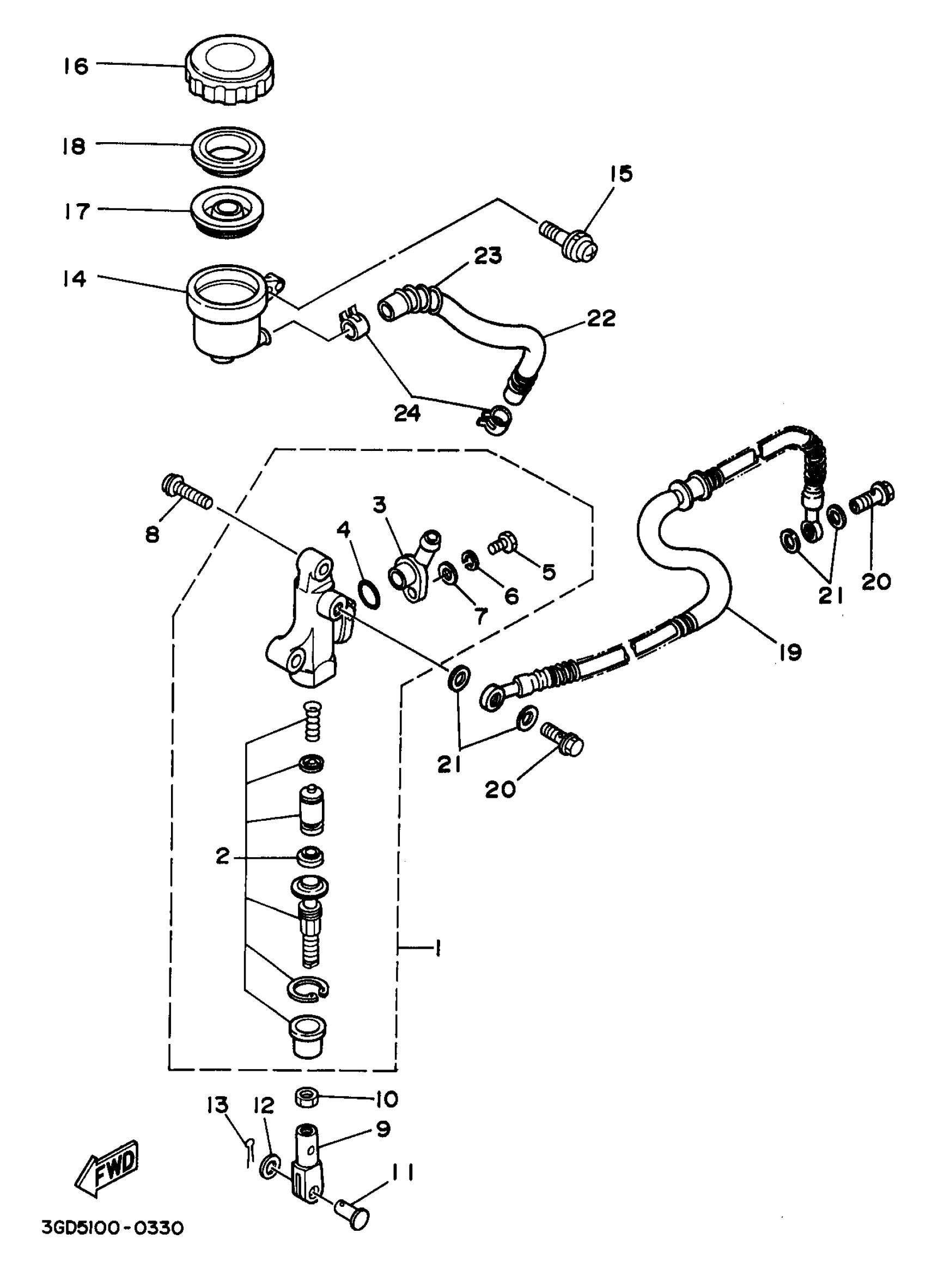 Yamaha YFM350XKC (WARRIOR) 3GDM 1998 REAR MASTER CYLINDER Diagram