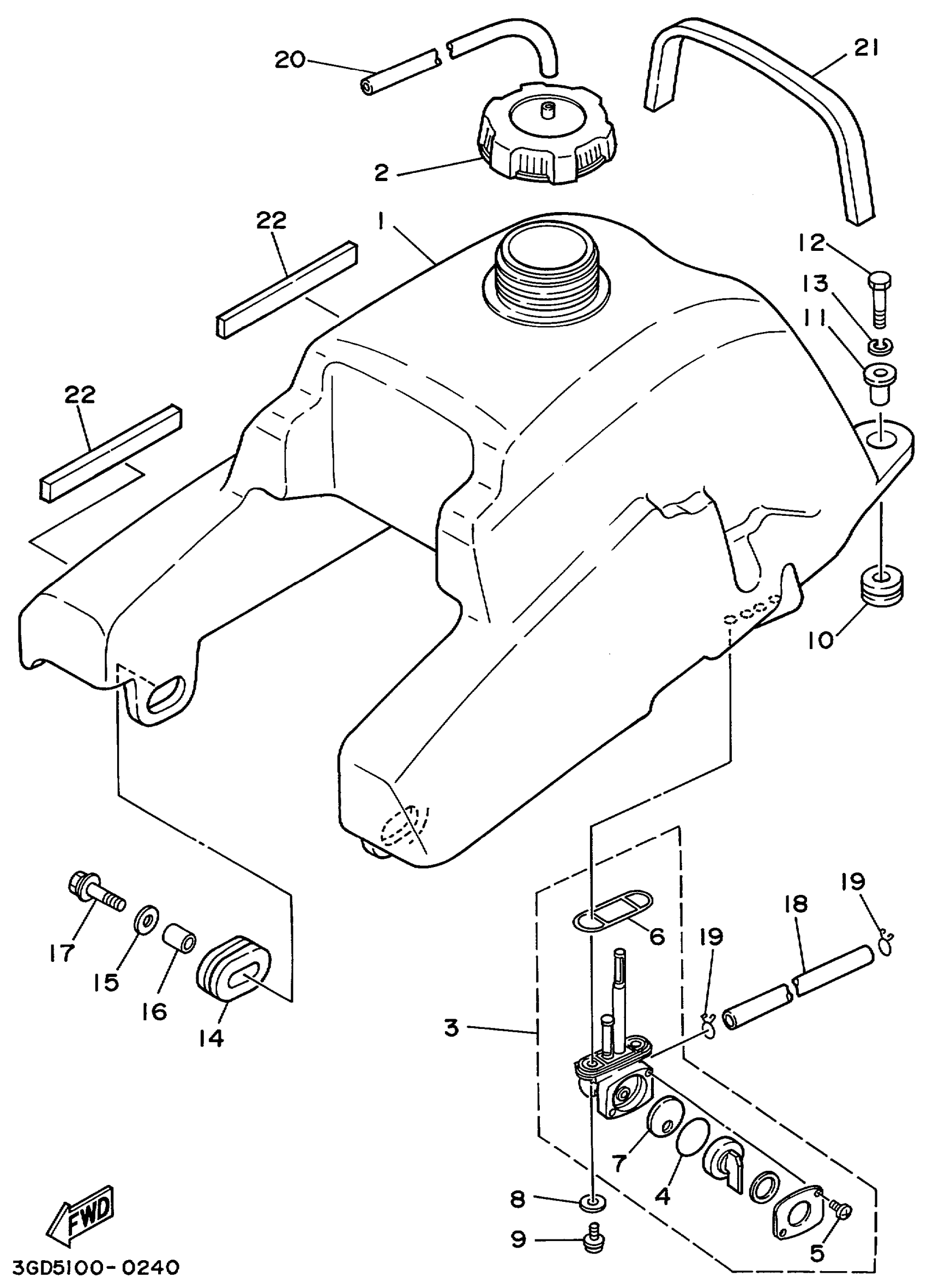 Yamaha YFM350XLC (WARRIOR) 3GDS 1999 FUEL TANK Diagram