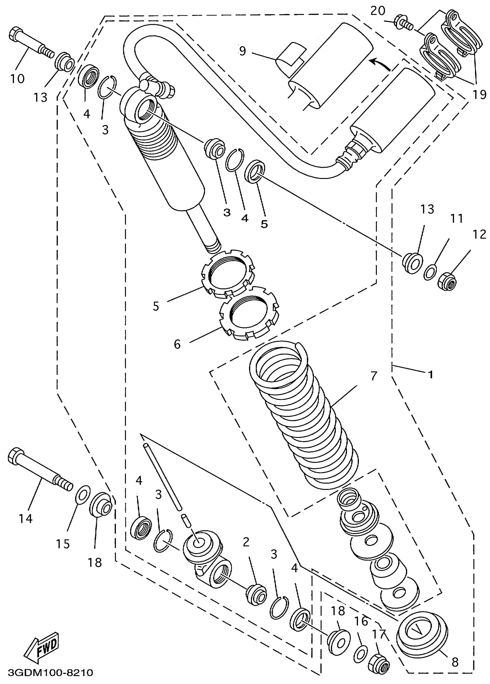 Yamaha YFM350XLC (WARRIOR) 3GDS 1999 REAR SUSPENSION Diagram