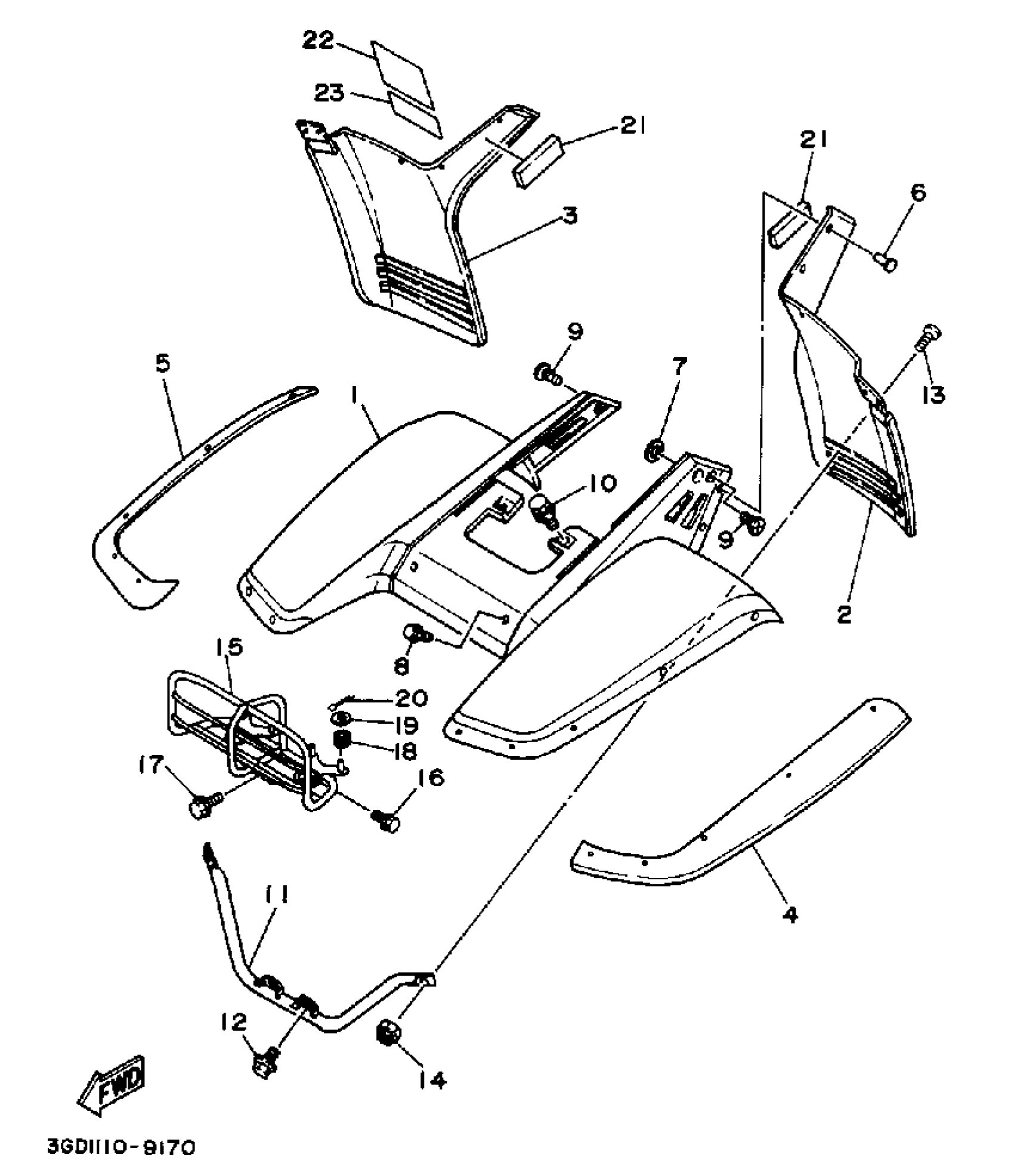 Yamaha YFM350XW (WARRIOR) 3GD 1989 FRONT FENDER CARRIER Diagram