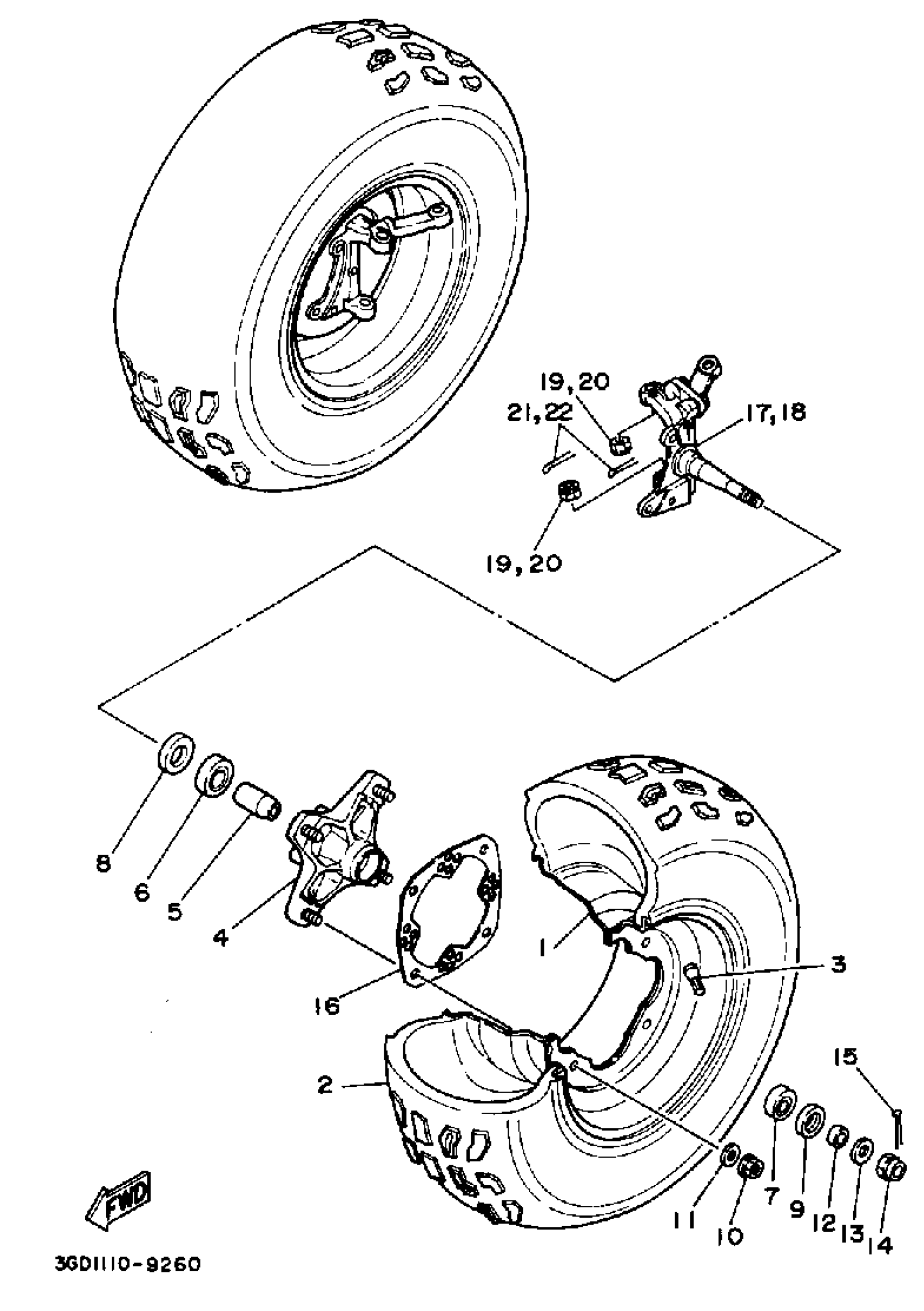 Yamaha YFM350XW (WARRIOR) 3GD 1989 FRONT WHEEL Diagram