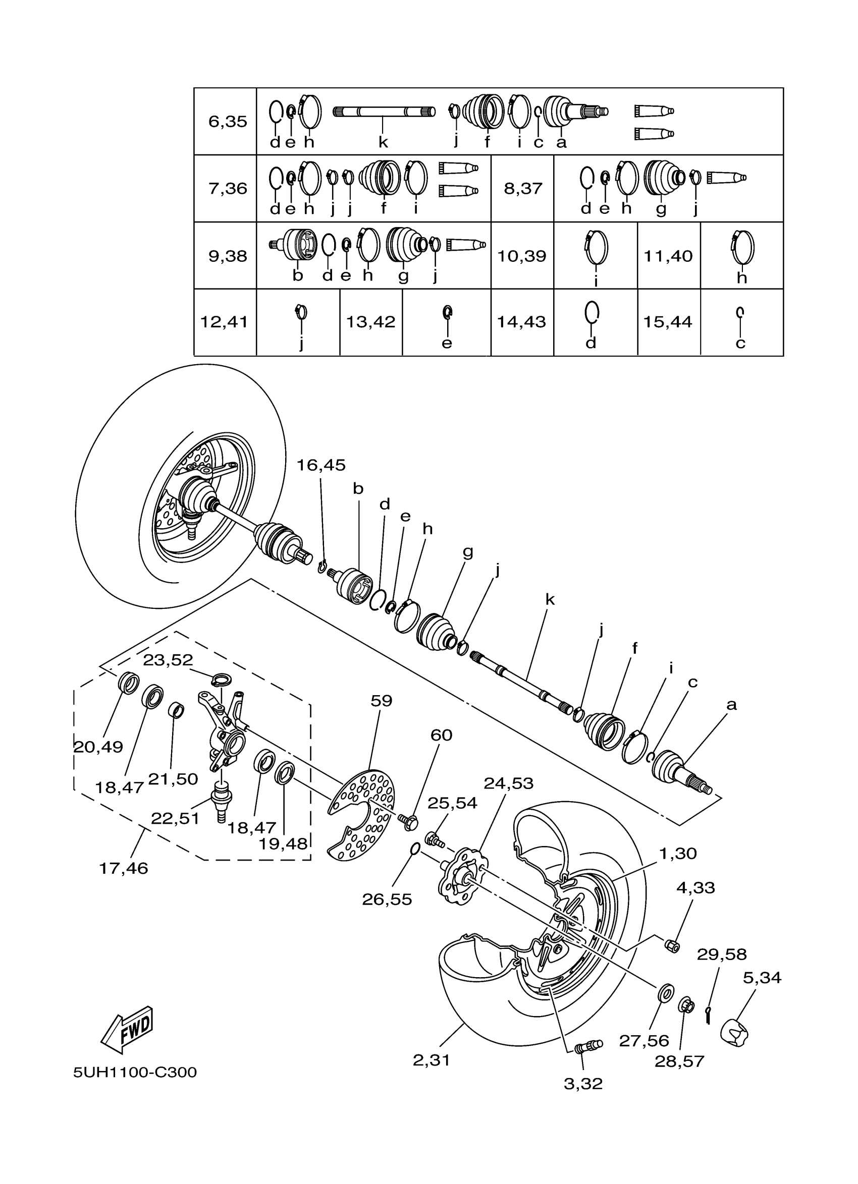 Yamaha YFM35FAHV (BRUIN 350 4WD HUNTER) 5UHF 2006 FRONT WHEEL Diagram