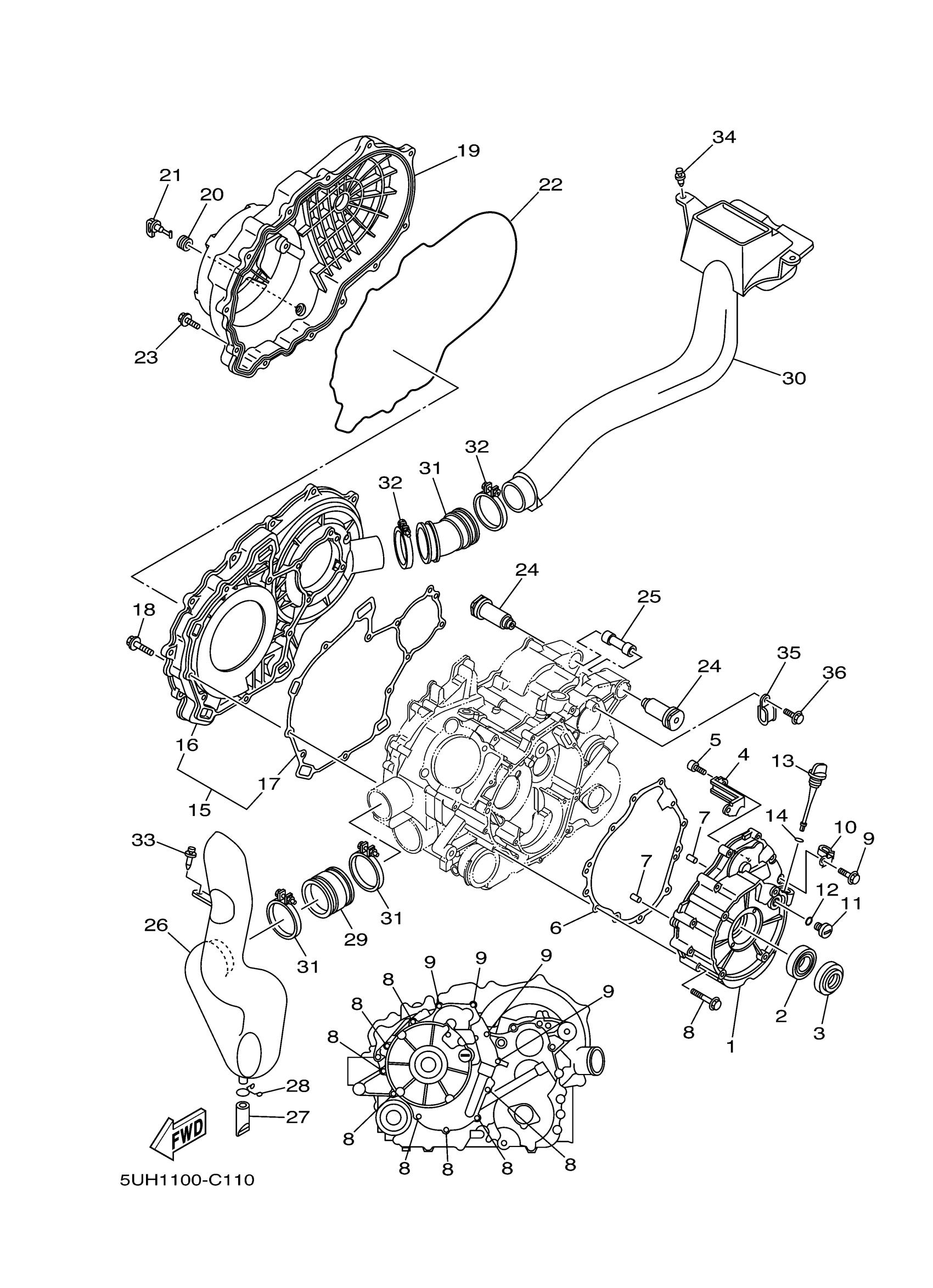 Yamaha YFM35FAS (BRUIN 350 AUTO 4X4_HARDWOOD) 5UH1 2004 CRANKCASE COVER 1 Diagram