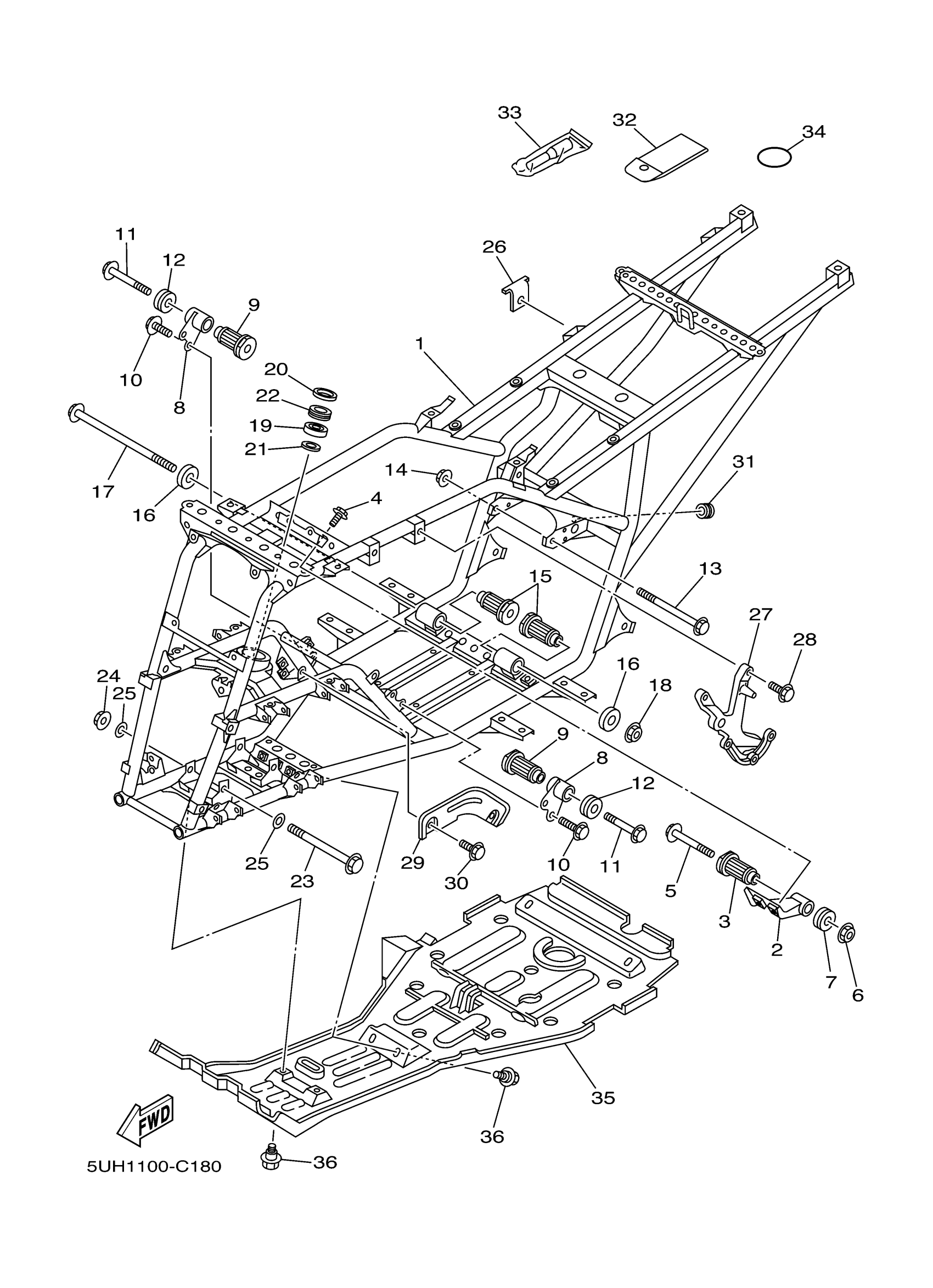 Yamaha YFM35FAS (BRUIN 350 AUTO 4X4_HARDWOOD) 5UH1 2004 FRAME Diagram
