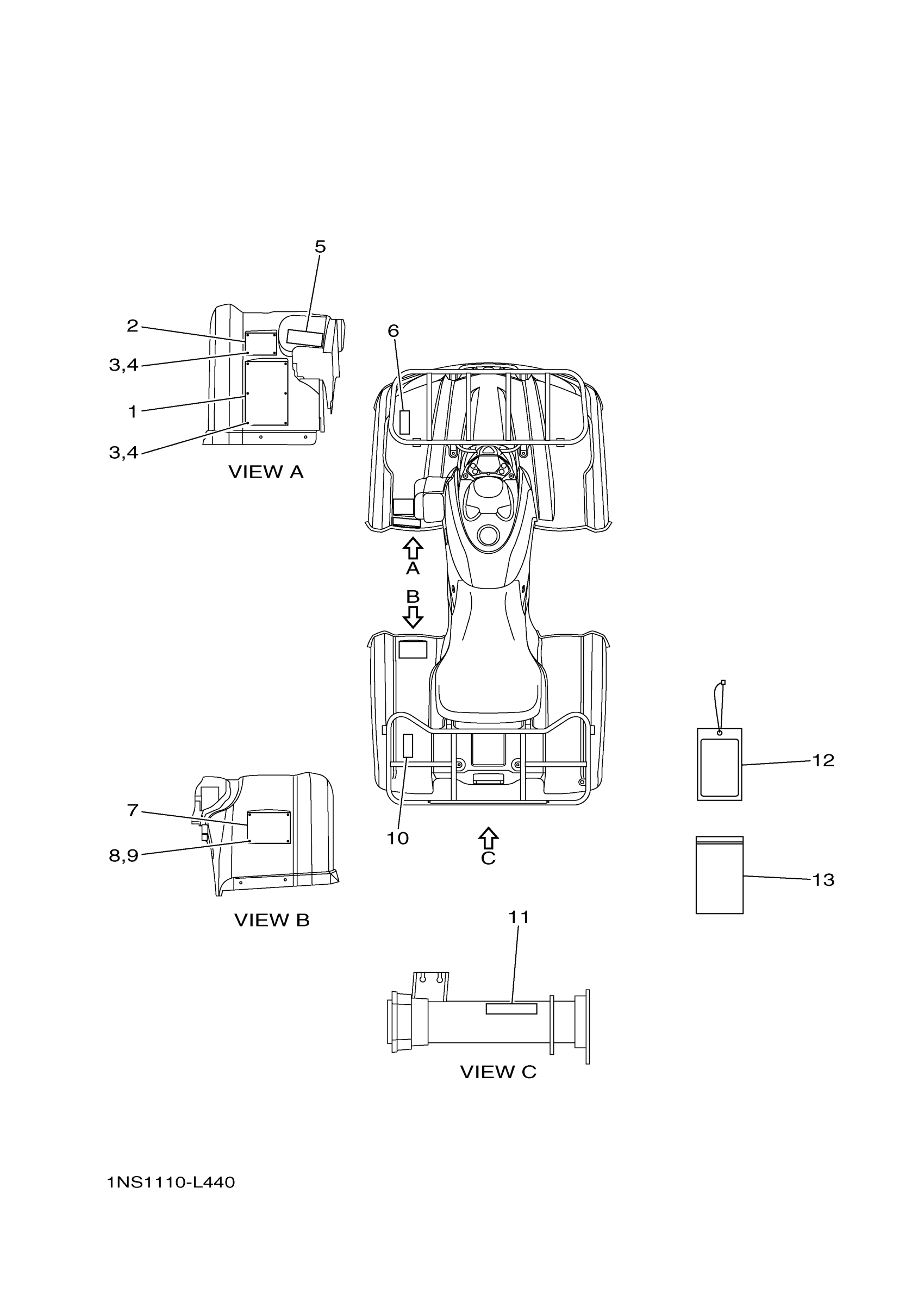 Yamaha YFM35FGBL (GRIZZLY 350 4WD) 1NS10 2012 EMBLEM LABEL 1 Diagram