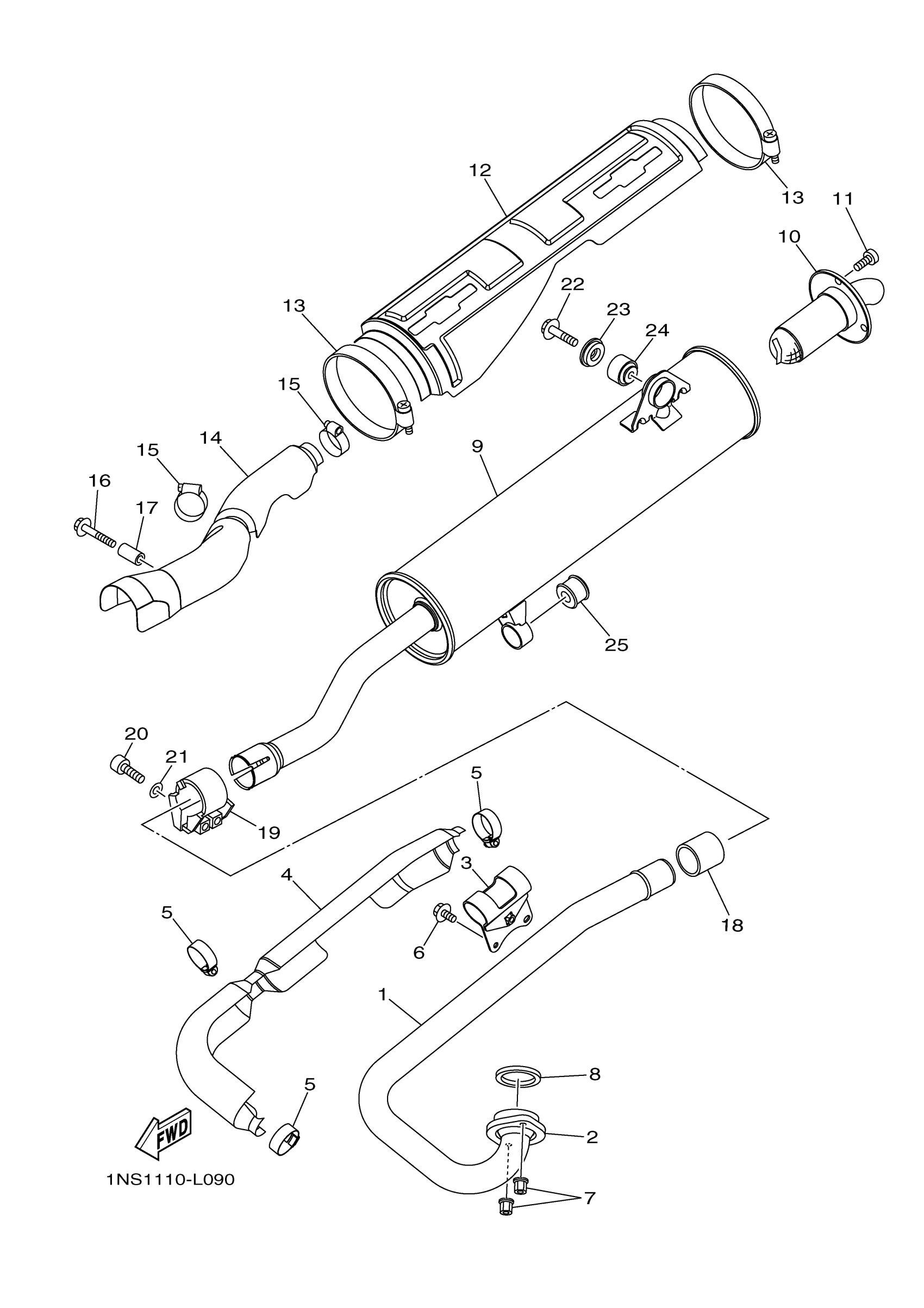 Yamaha YFM35FGDR (GRIZZLY 350 4WD) 1NS62 2013 EXHAUST Diagram