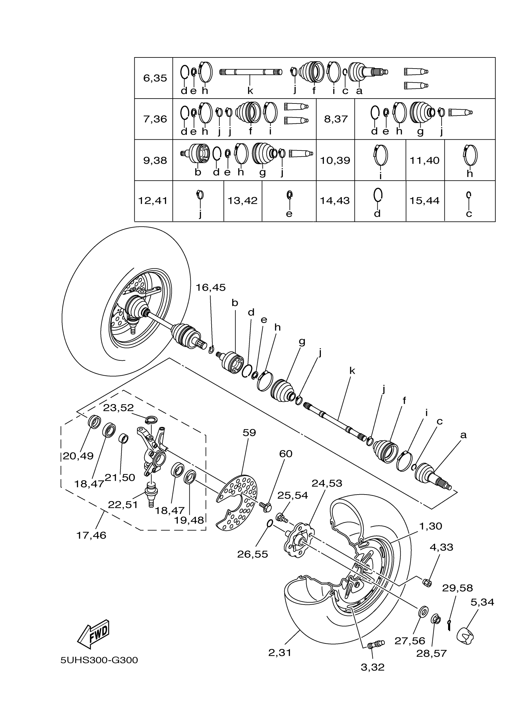 Yamaha YFM35FGHX (GRIZZLY 350 4WD HUNTER) 5UHR 2008 FRONT WHEEL Diagram
